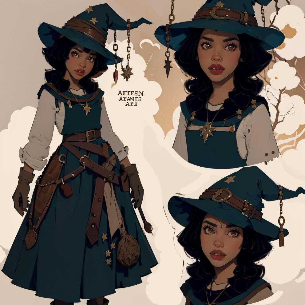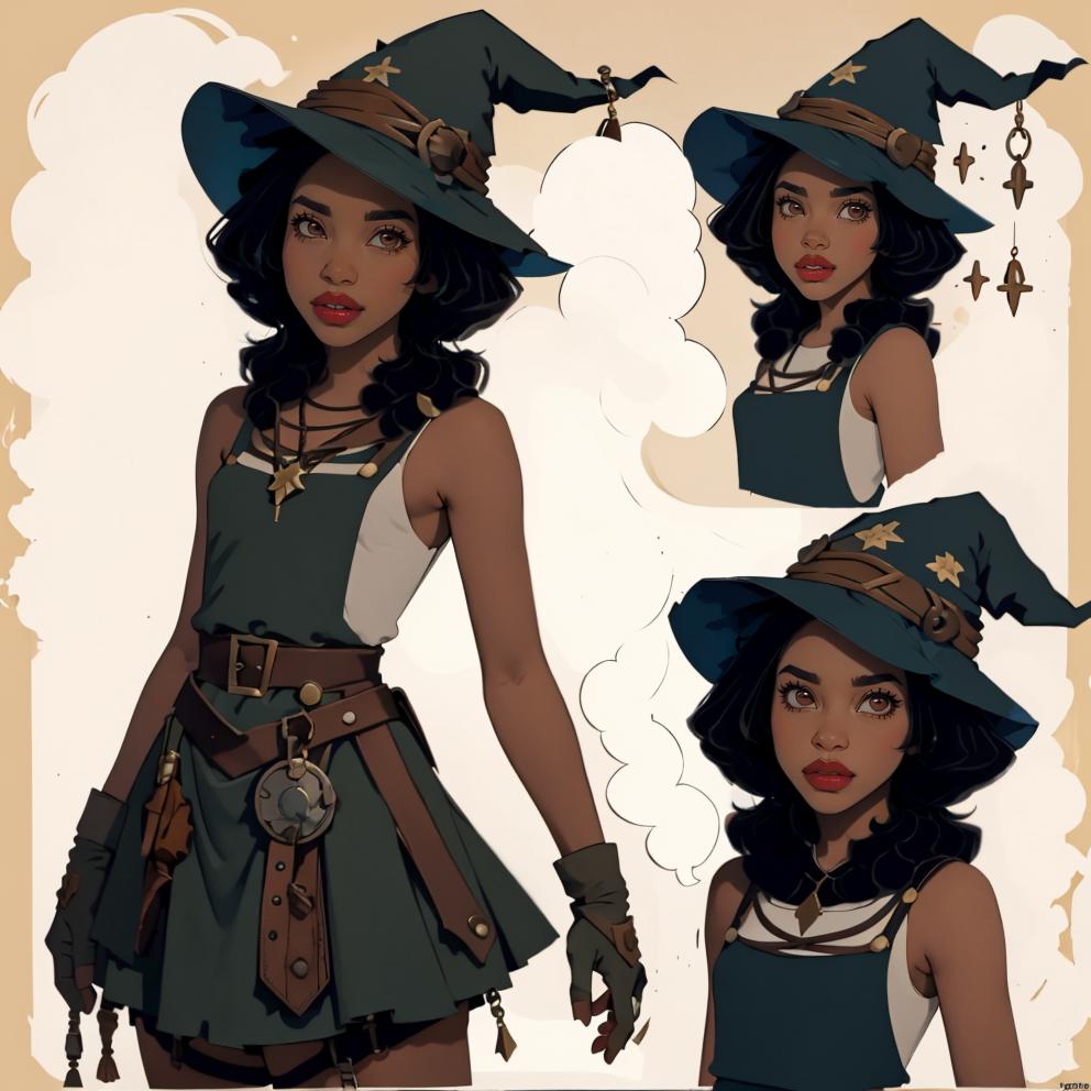 Generally, you want to have "Audrey Ramirez, 1girl, solo, long hair, sleeveless, shirt, black hair, hat, dark skin, black eyes, dark-skinned female, parody, overalls, perfect lips," included in your prompt