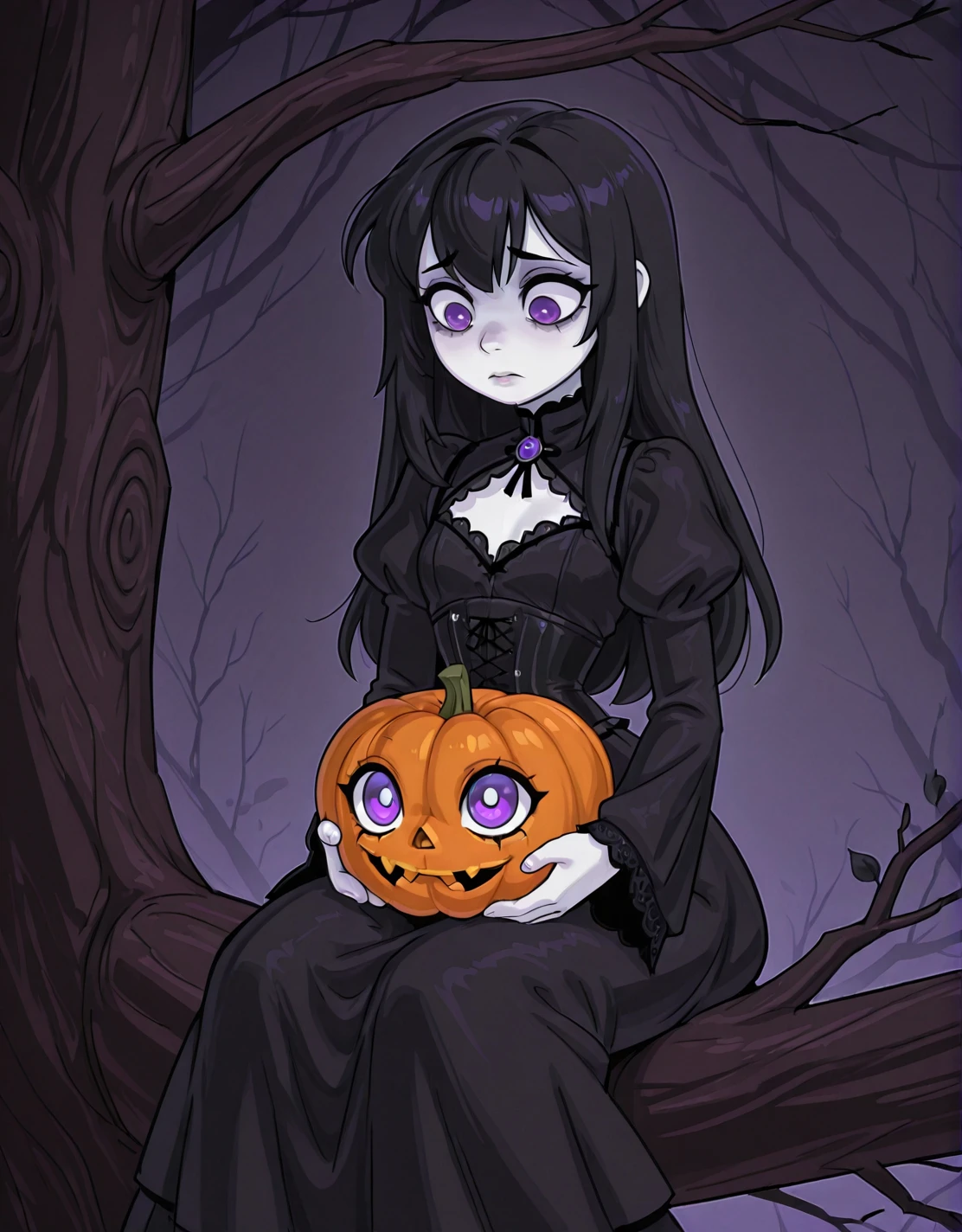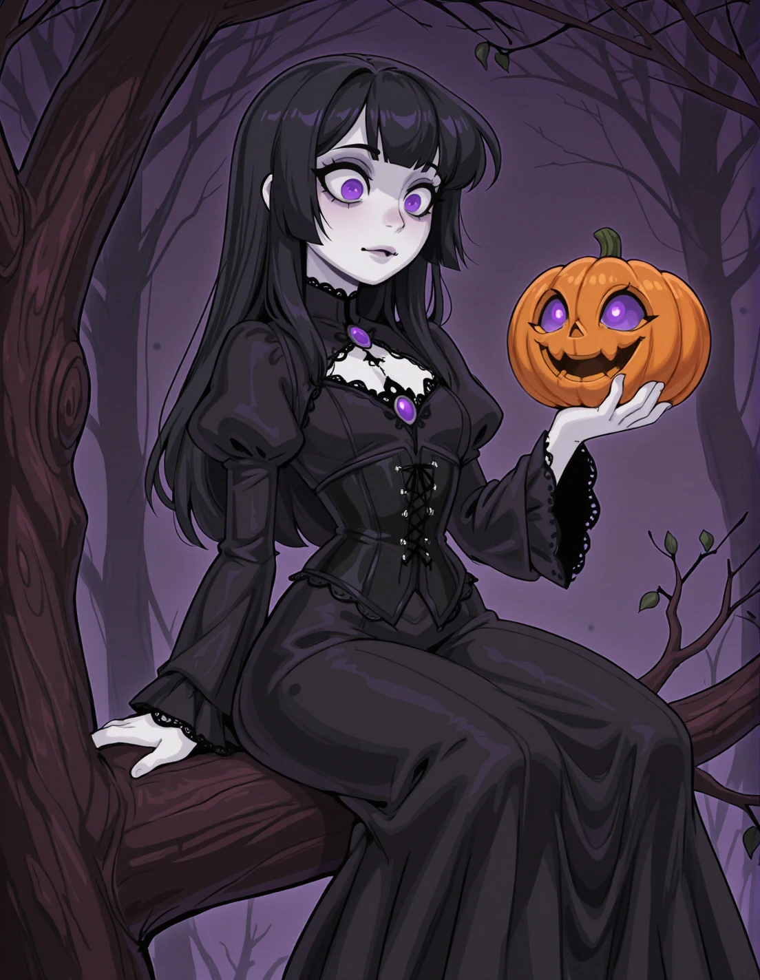 A dark, elegant character blending realism with a subtle gothic touch.