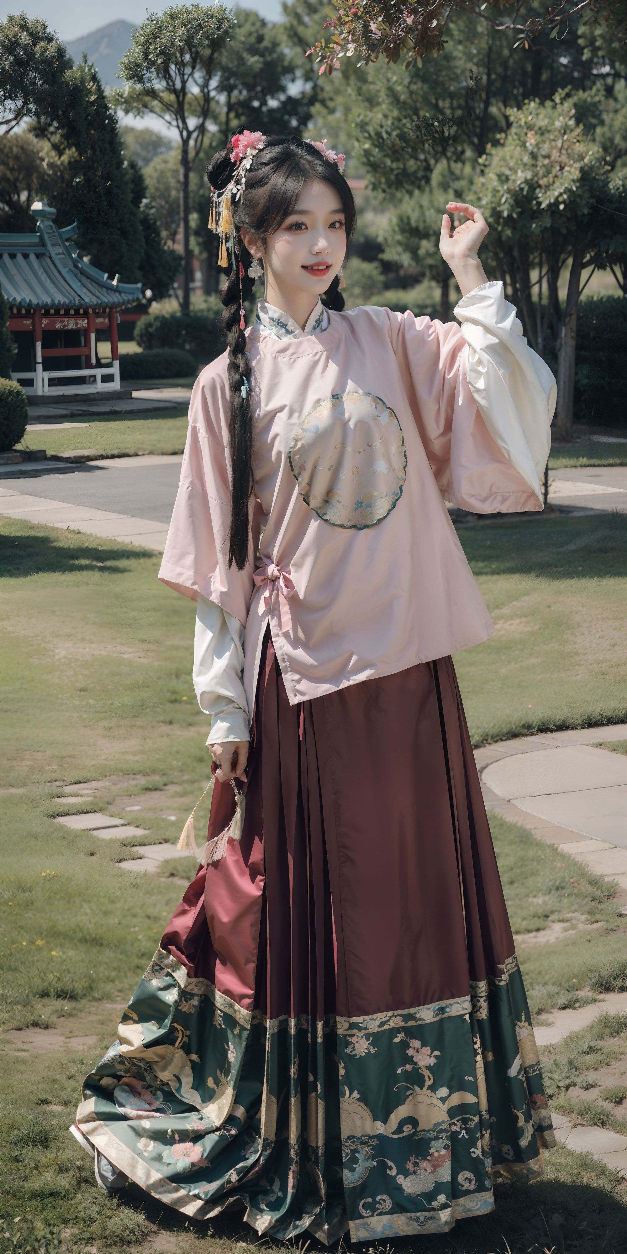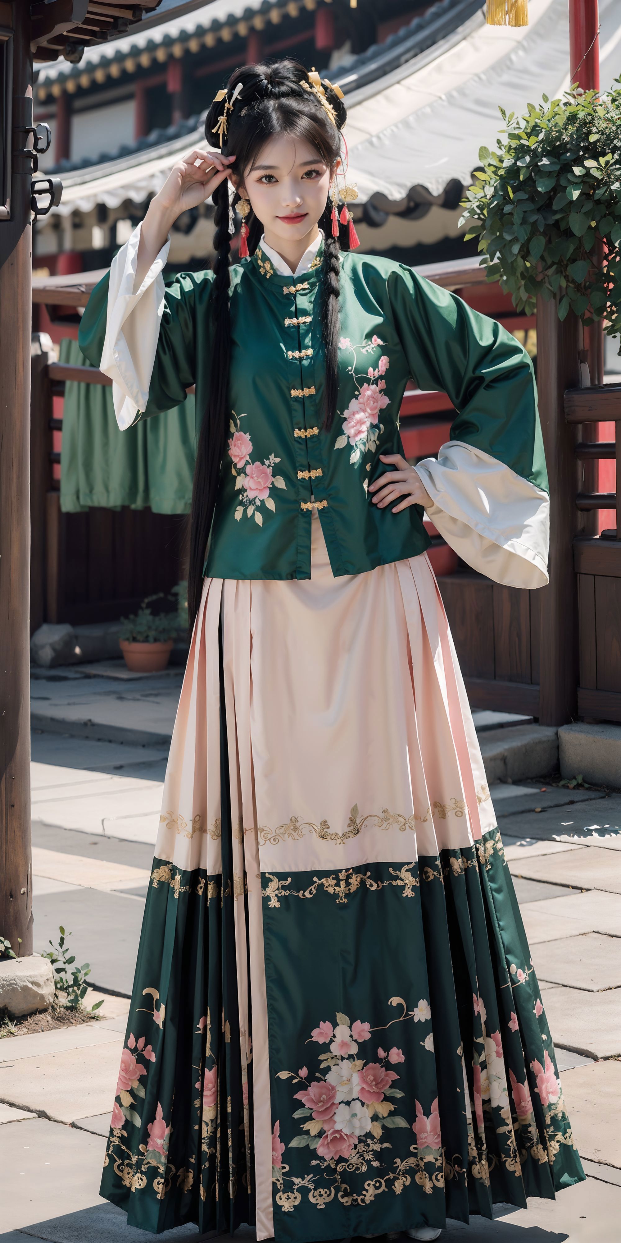 关键词:1girl,(white/blue/red/black/green/pink/yellow chinese shirt),(white/blue/red/black/green/pink/yellow chinese long skirt), cowboy shot,