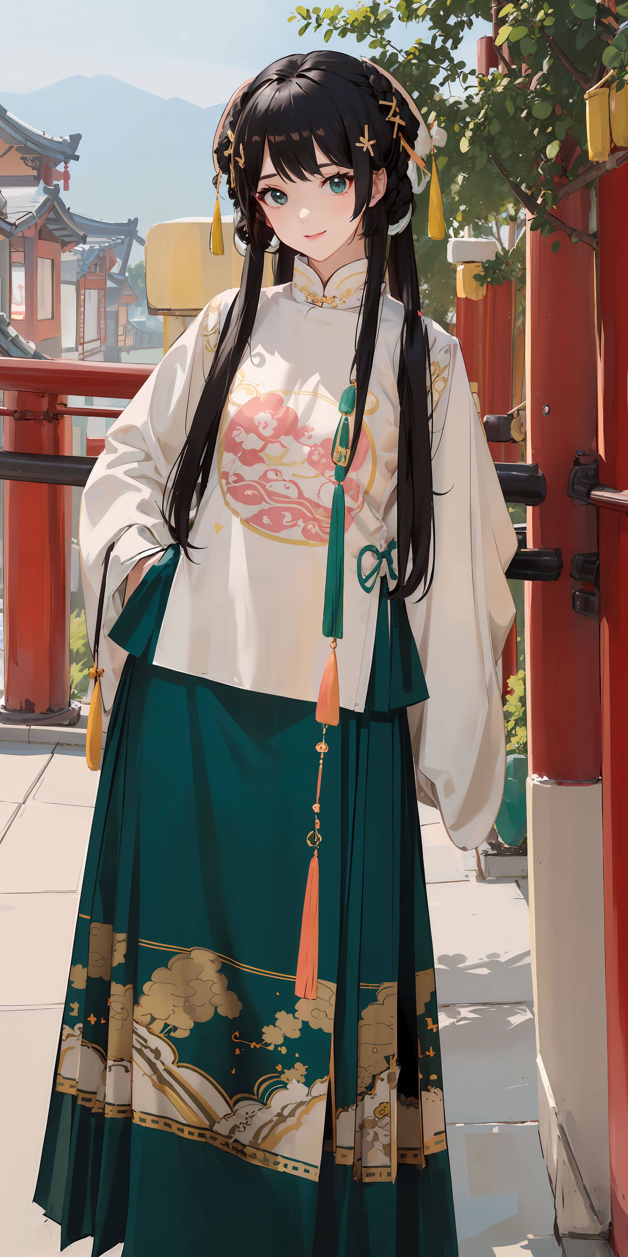 Trigger Words:1girl,(white/blue/red/black/green/pink/yellow chinese shirt),(white/blue/red/black/green/pink/yellow chinese long skirt), cowboy shot,