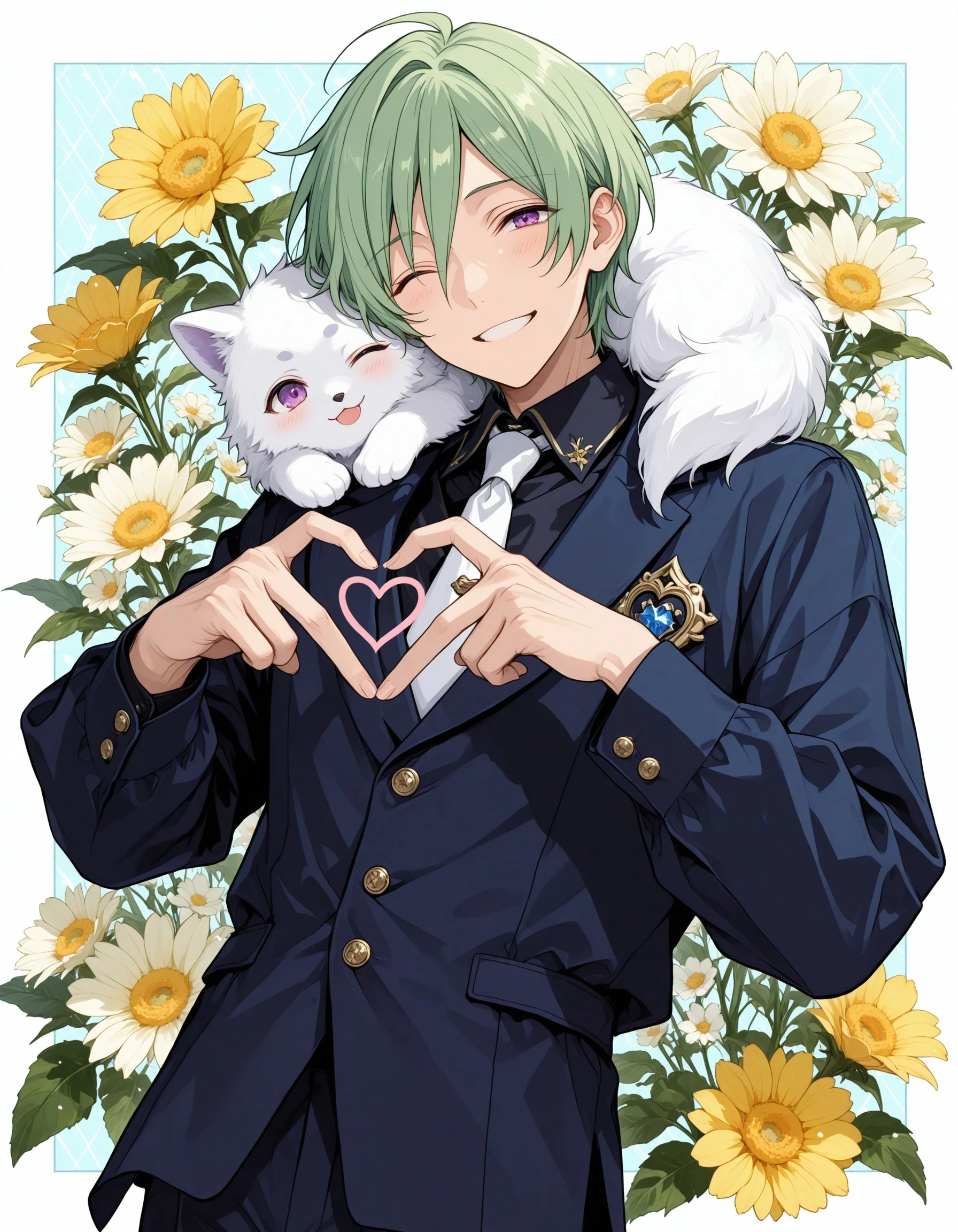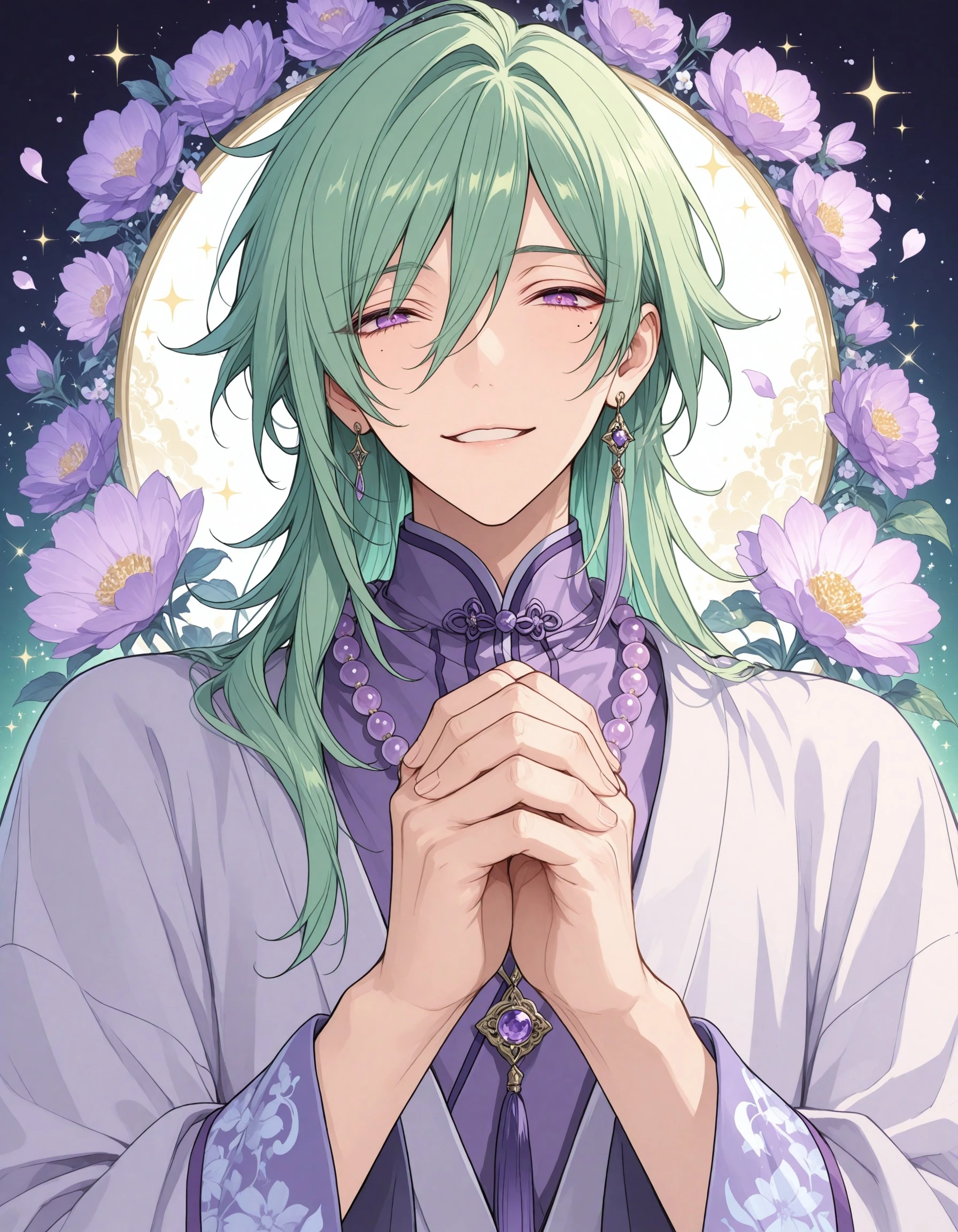 ttm_kzhy, short hair, purple eyes, green hair, 1boy, male focus