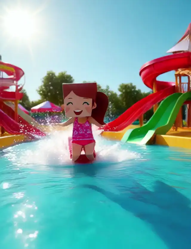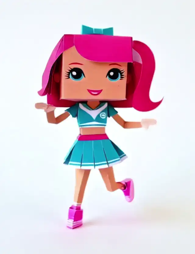 "A determined female paperfold triathlete runs toward the finish line with intense focus. As she crosses it, the camera slowly zooms in capturing her triumphant moment. She raises her arms in a victorious pose, smiling with pride and exhaustion. The crowd cheers in the background, and the sun casts a warm glow over the scene, emphasizing her achievement."