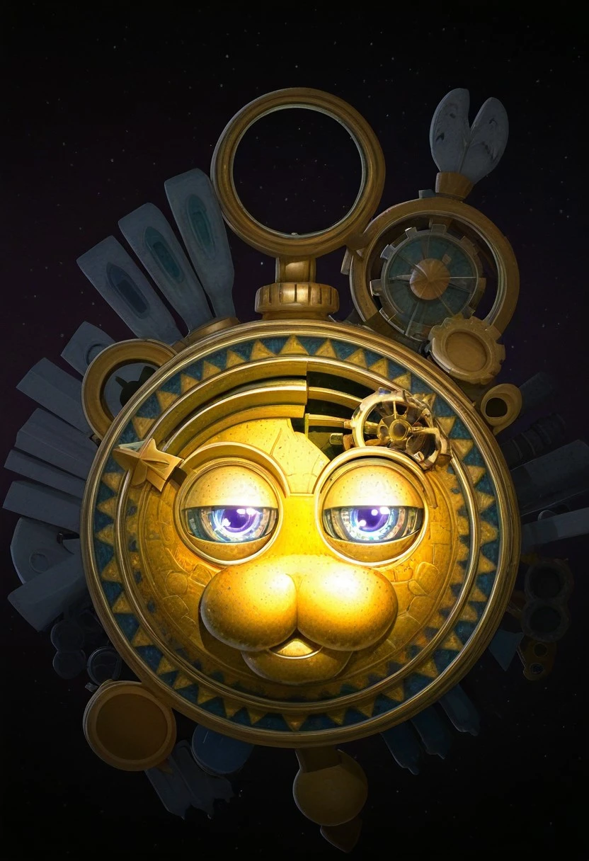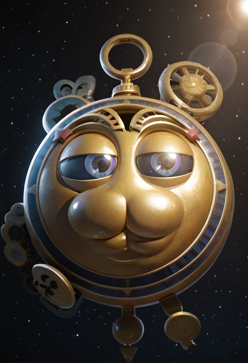 Galactic Nova, round body, circle-shaped body, giant, golden metal skin, blue eyes, :3, handle on top of head