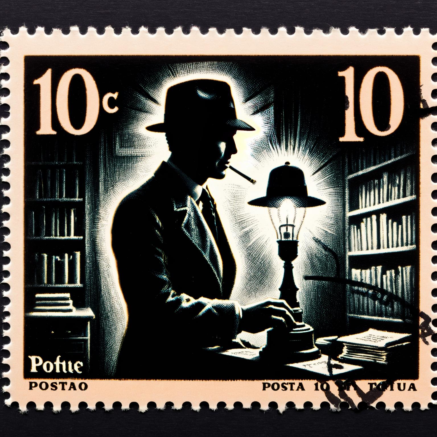 This style is characterized as a 'vintage-inspired, nearly monochromatic visual aesthetic, specifically tailored for postage stamp design'. It skillfully utilizes shadows and light, imbuing depth and a sense of enigma in each stamp. The color palette is predominantly muted, echoing a nostalgic and timeless charm. While rooted in realism, there's an infusion of surreal elements, making each postage stamp unique and captivating. This approach melds the historical allure of classic stamp design with a modern, artistic twist, often reminiscent of vintage photography or film noir, perfectly suited for the miniature canvas of a postage stamp.