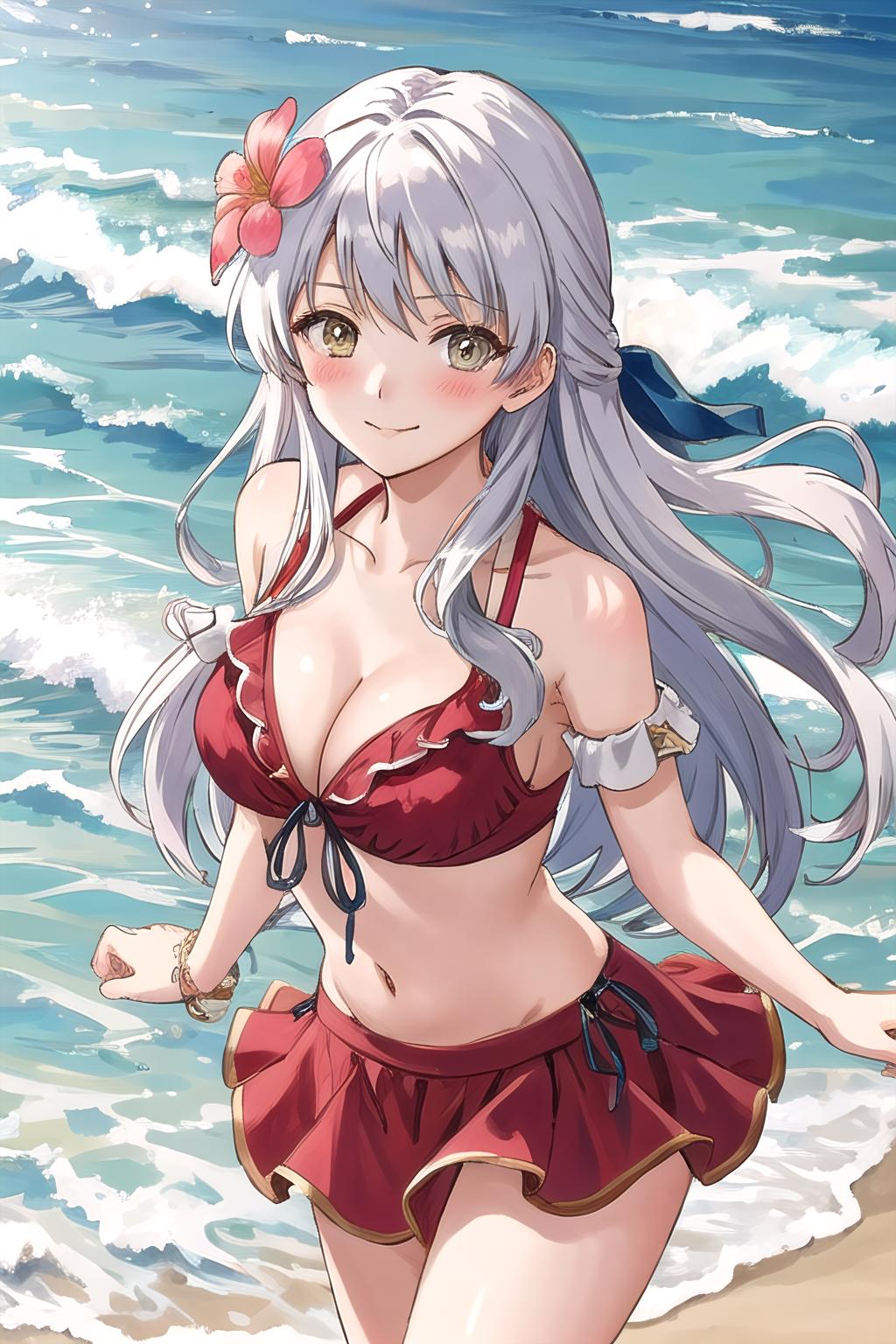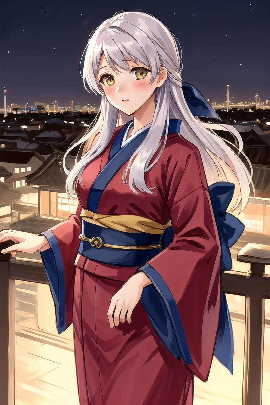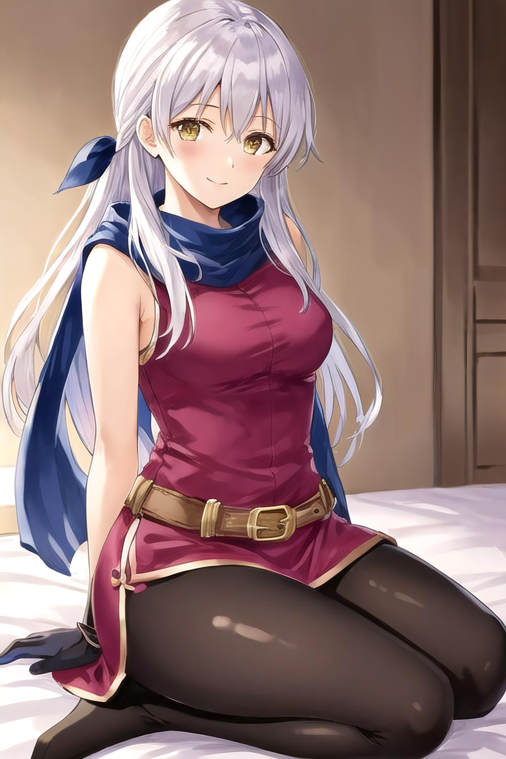 I included more variation in outfits into the dataset than I usually would. The result is that you can get better results when trying to generate her official alternate outfits, so give that a try if you'd like. I've also noticed with white hair in general, it tends to get quite discolored depending on the lighting. This can be fixed by prompting either 'white hair' or 'grey hair', or by putting the hair color it changed to in the negative (usually 'purple hair'). Overall though, happy with how the LoRA turned out.