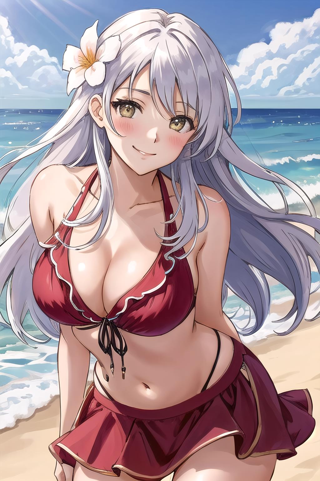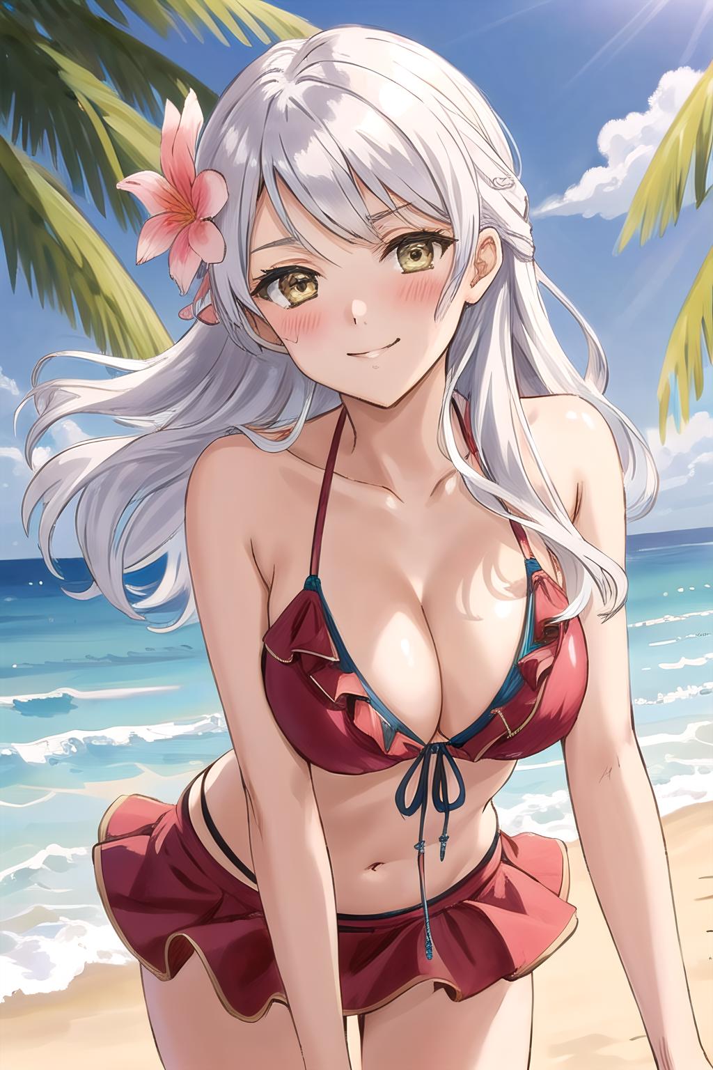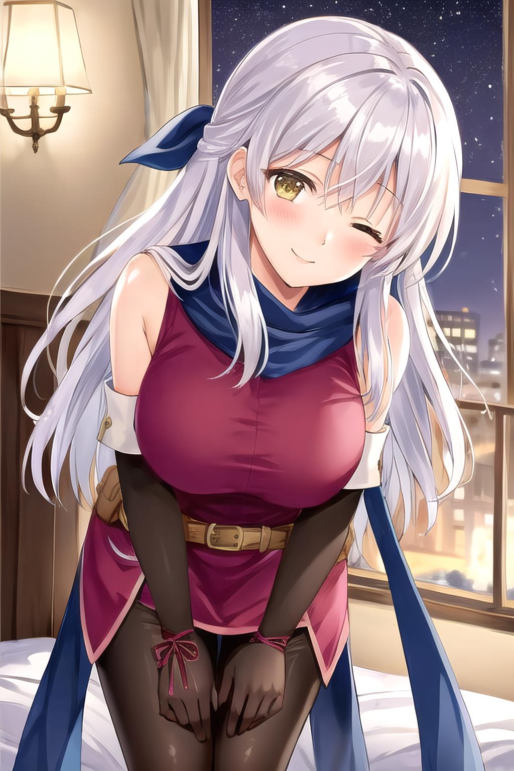 I included more variation in outfits into the dataset than I usually would. The result is that you can get better results when trying to generate her official alternate outfits, so give that a try if you'd like. I've also noticed with white hair in general, it tends to get quite discolored depending on the lighting. This can be fixed by prompting either 'white hair' or 'grey hair', or by putting the hair color it changed to in the negative (usually 'purple hair'). Overall though, happy with how the LoRA turned out.