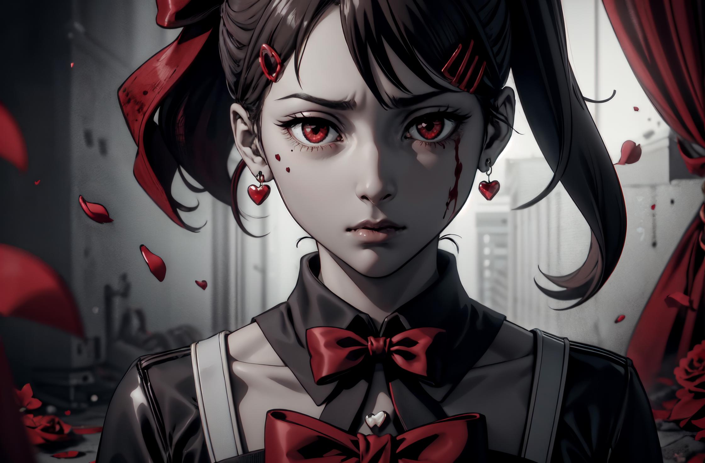 kobeni higashiyama, black hair, hair ornament, hairclip, mole, mole under eye, ponytail, short hair, (brown eyes:1.5),