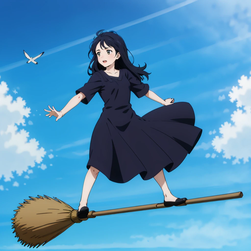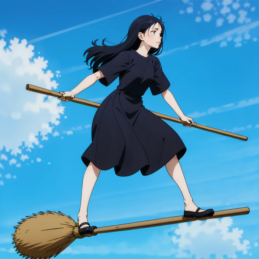 箒の上で、立ったり座ったり出来ないかテストしました。