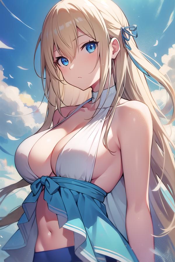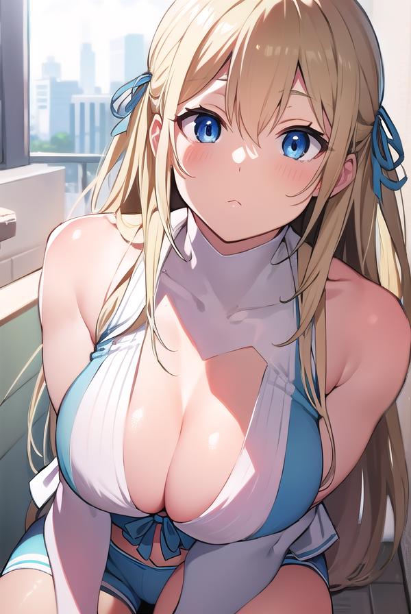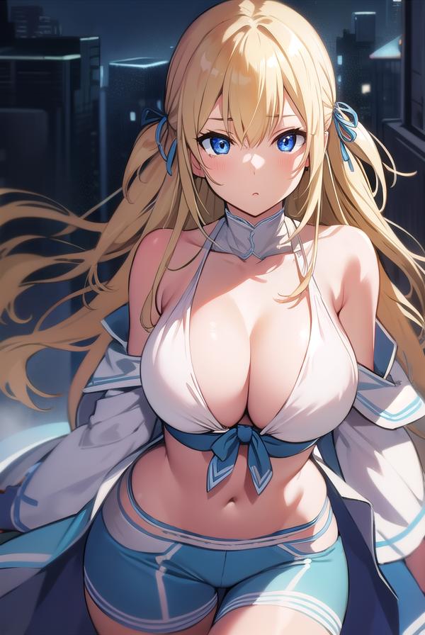 sylphy, blonde hair, blue eyes, hair ribbon, long hair, ribbon, two side up,