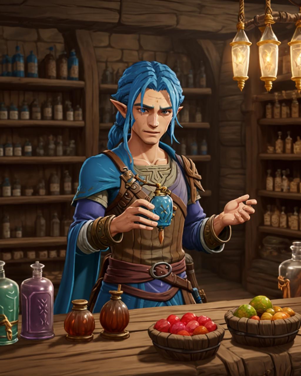 Because I'm lazy and a comedic genius, all of the examples for v1.1 are simple Potion Seller prompts. For more examples of what the model can do, go look at the v1.0 samples.
