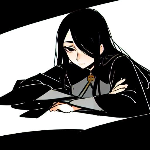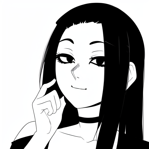 Example: "woman, telepurte drawing, black hair, hair over one eye, simple background, white background, monochrome".