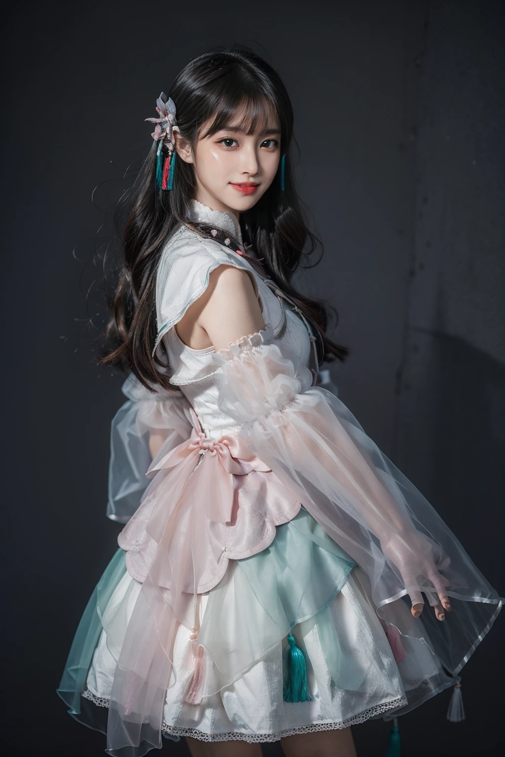 cyb dress, chinese clothes, detached collar, clothing cutout, wide sleeves, see-through sleeves, tassel