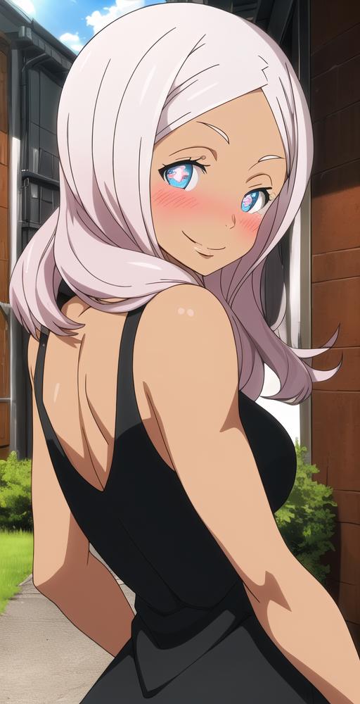 Not outfit specific, put "glowing eyes" for her pink glowing eyes.
