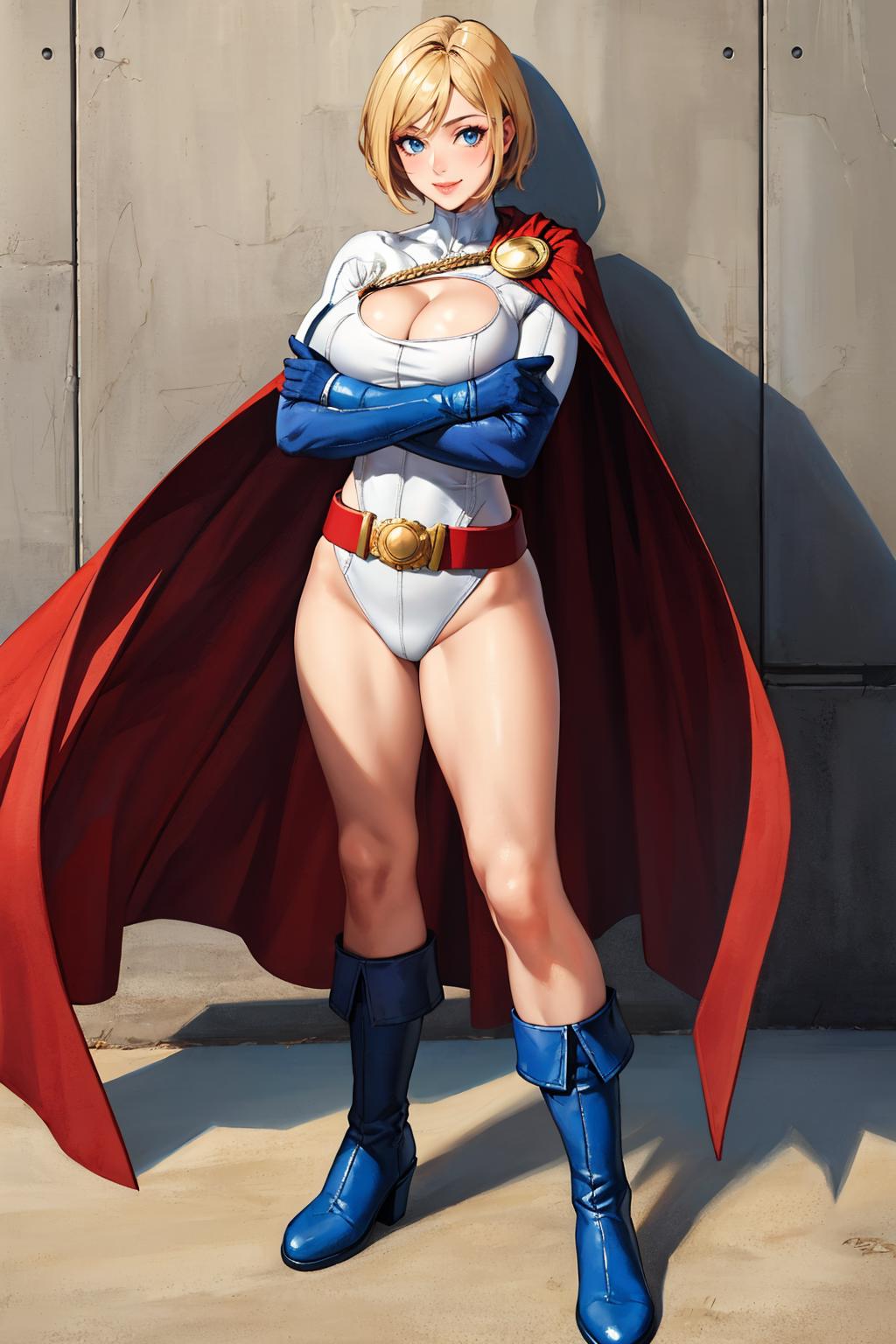 Power Girl from DC Comics. Trained on NAI. Tested at 0.8-1.0 strength.