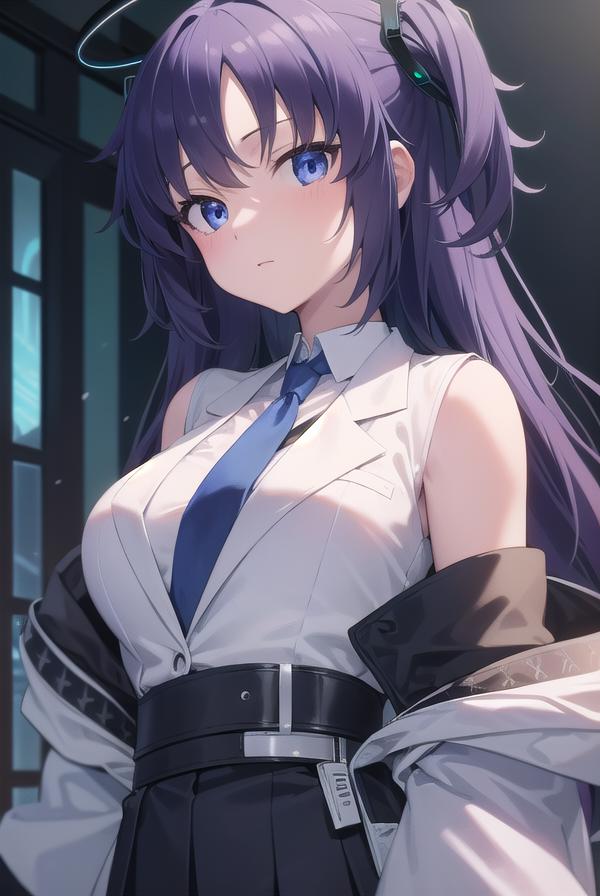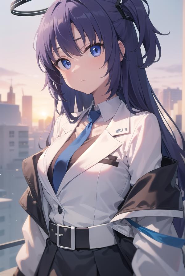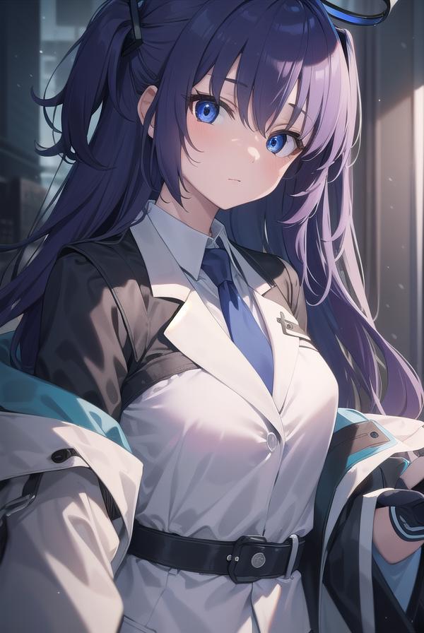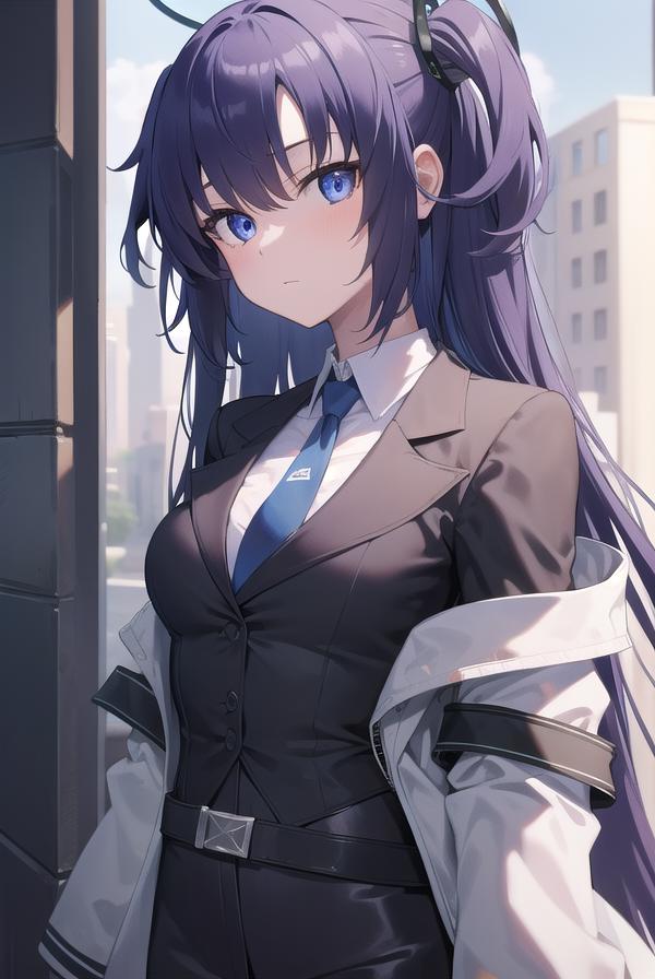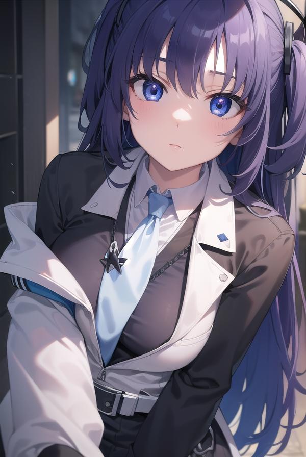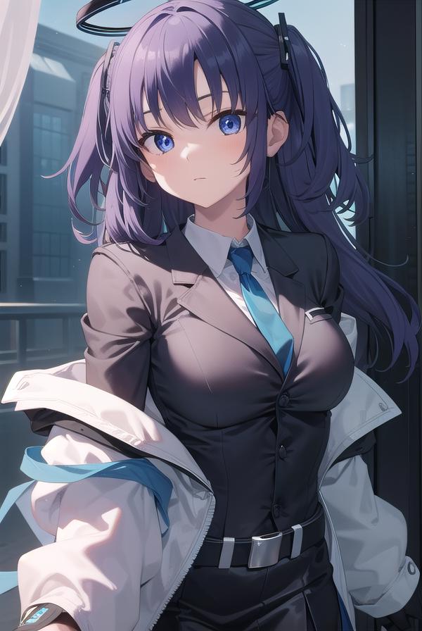 yuuka, blue eyes, halo, purple hair, two side up, long hair,