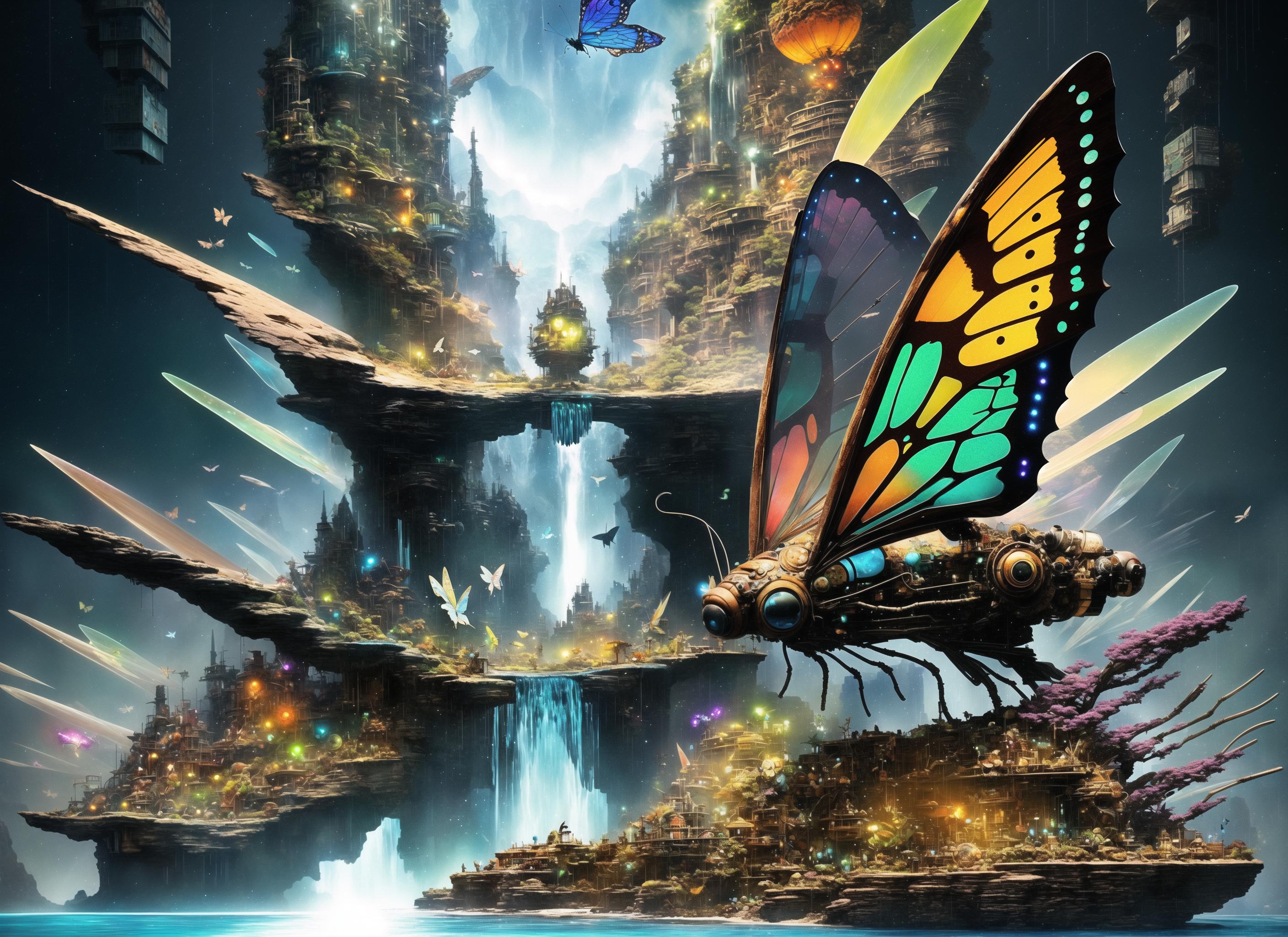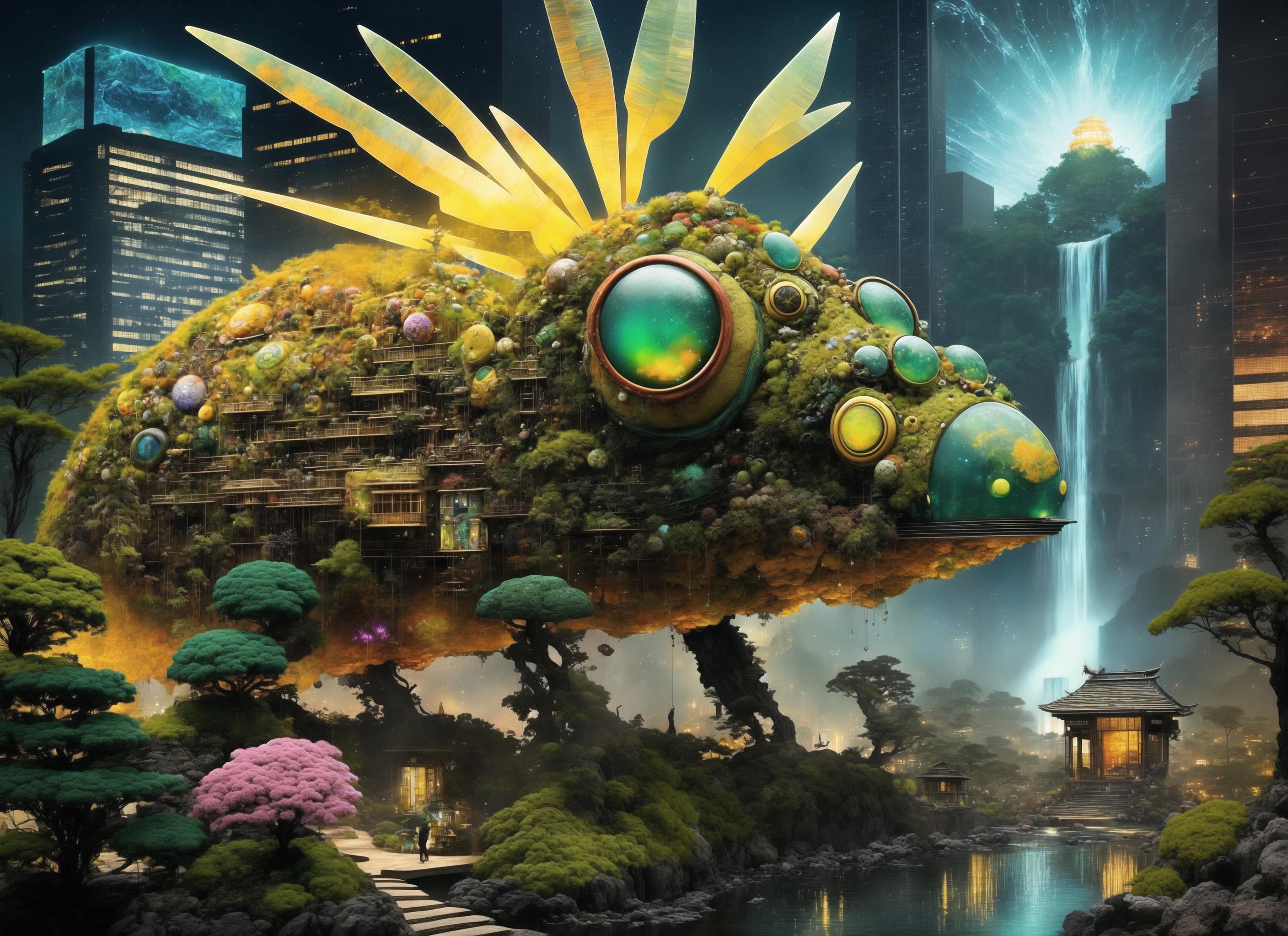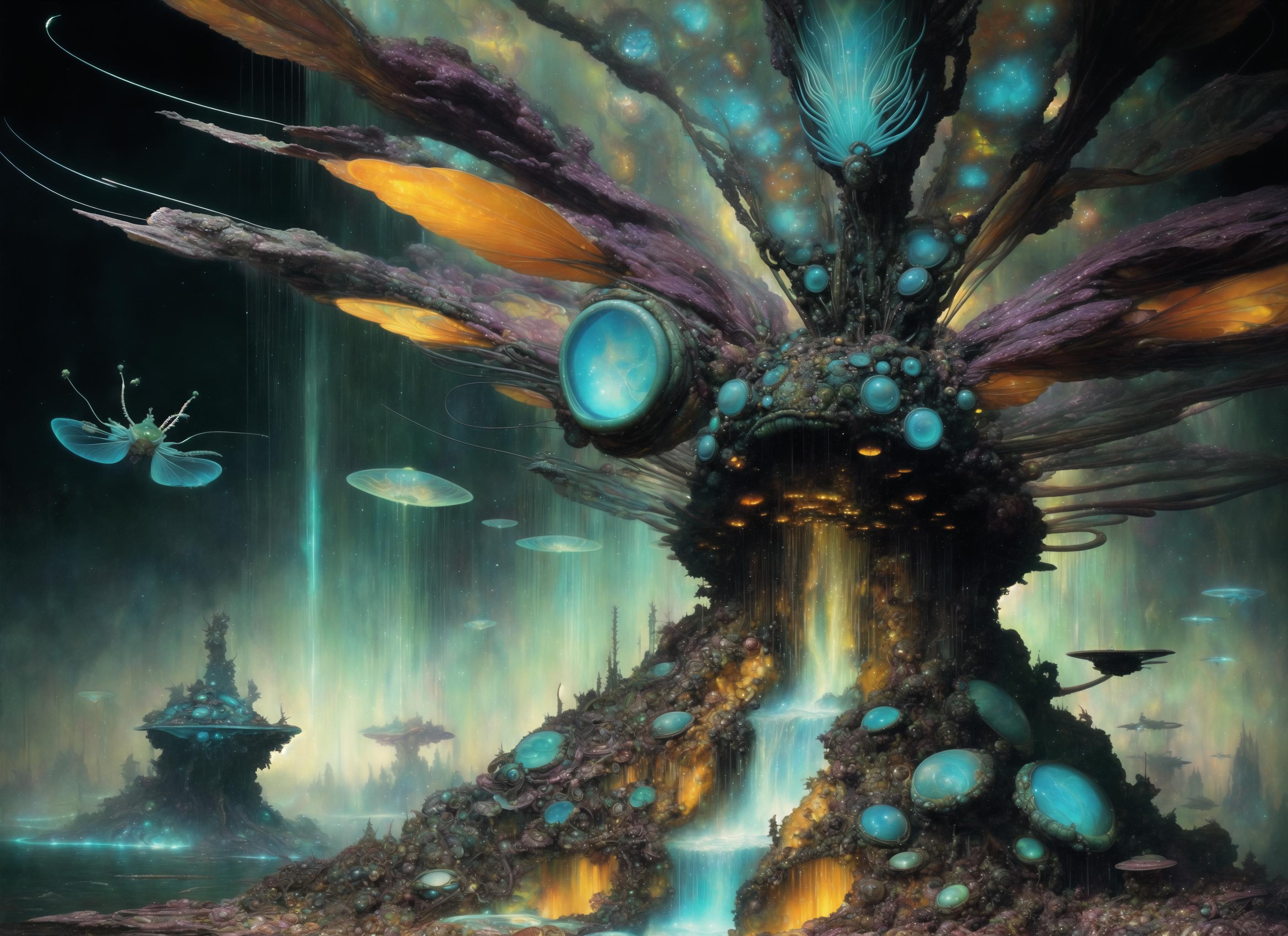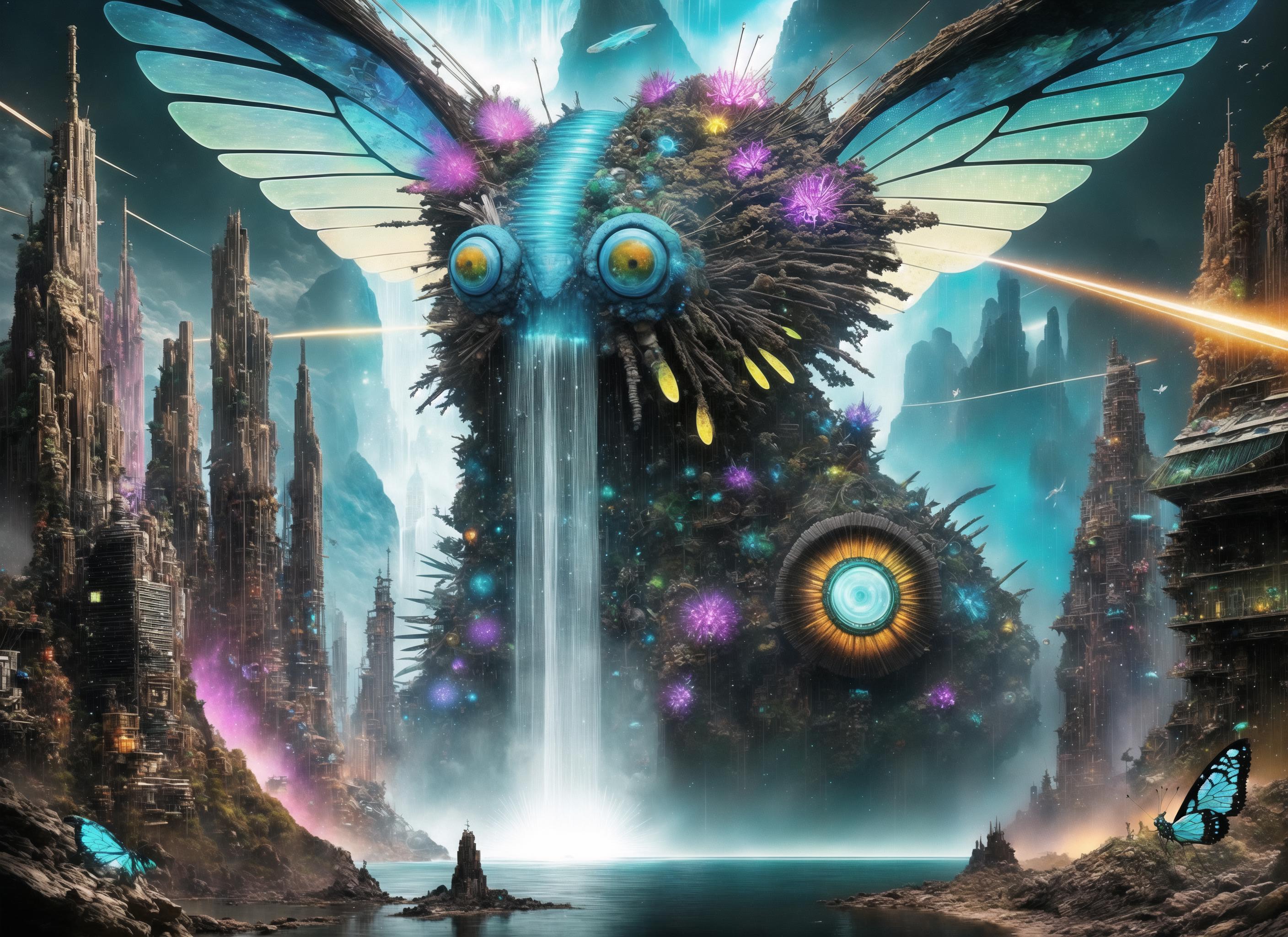 Further words to use based on captioning in the training are: insect, monster, gears, paper, creature, weird, robot, eye, giant, scrap, frog, fish, bird.