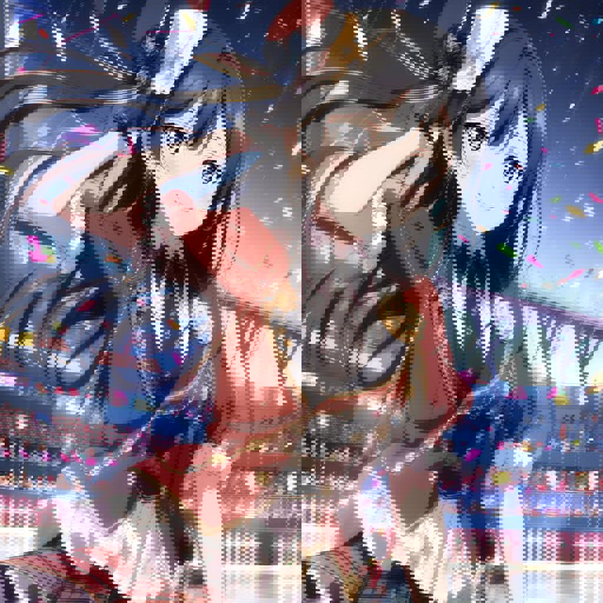 idol generates towards her red outfit.