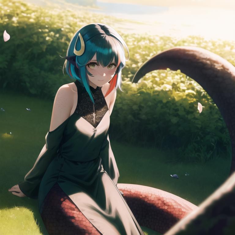 Trained using anime screencaps and fanart on the animefull-final model for 13 epochs. I had to use quite a high network dim of 128 so it could understand the snake part better, which I resized to one of 64 using the resize script.