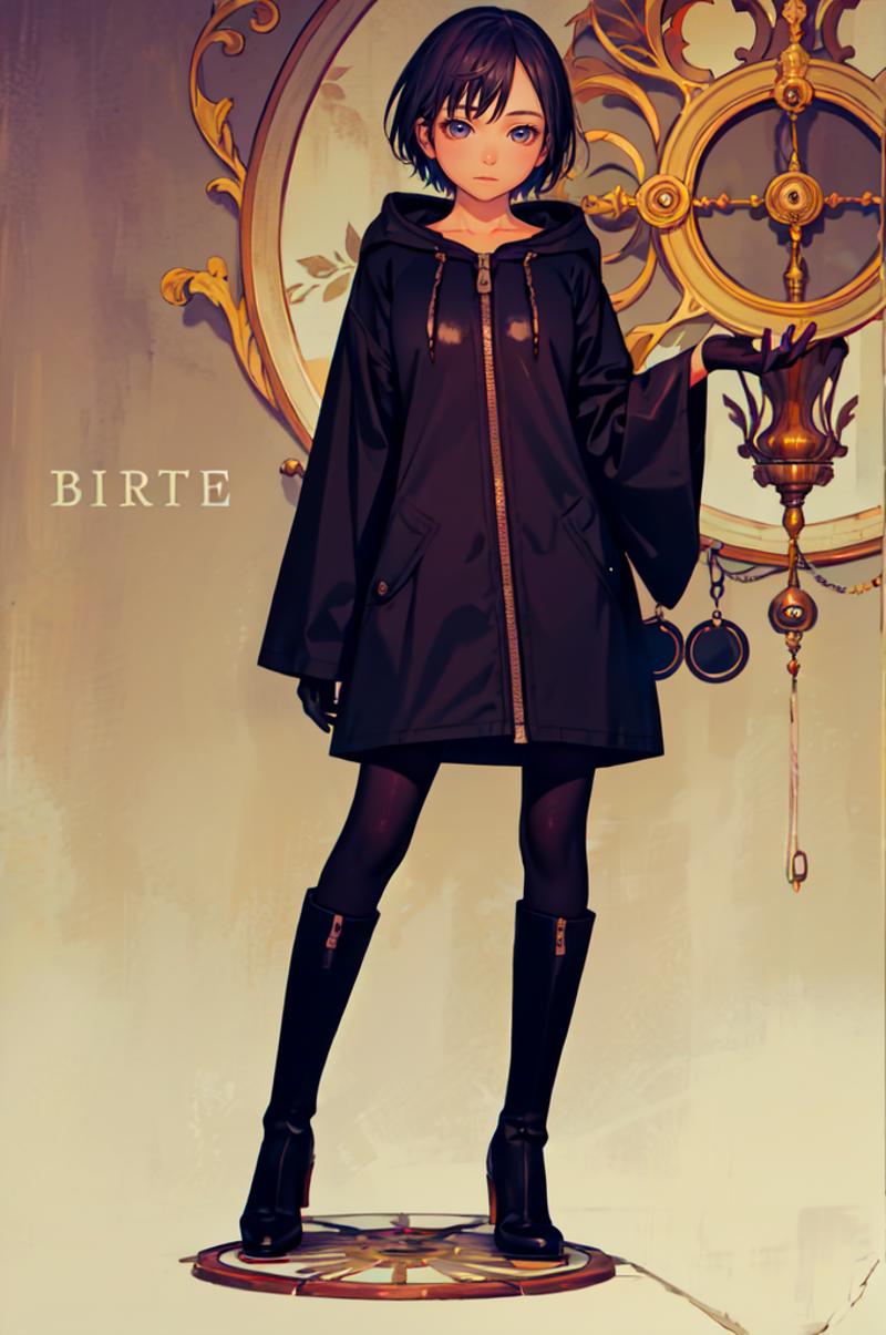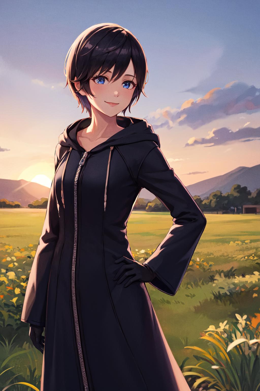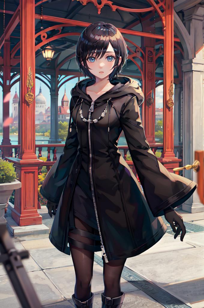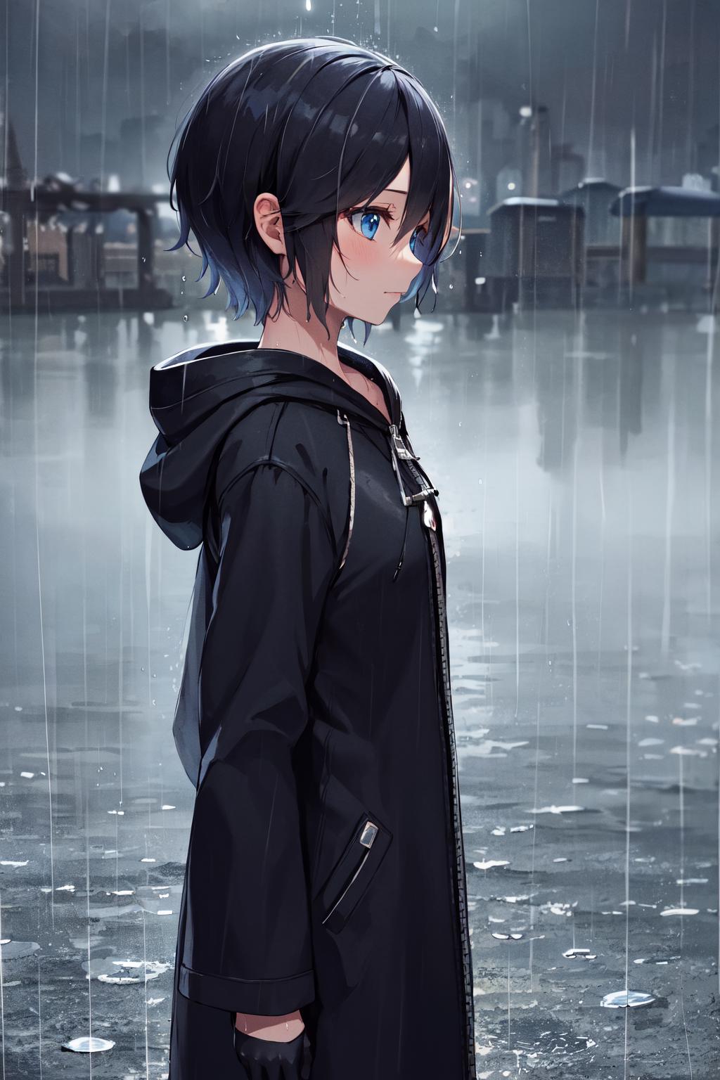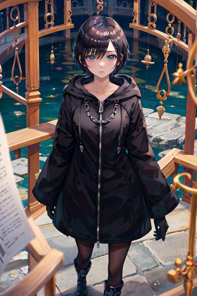 aaxion, short hair, hood, black coat, hooded coat, zipper, long sleeves, black gloves