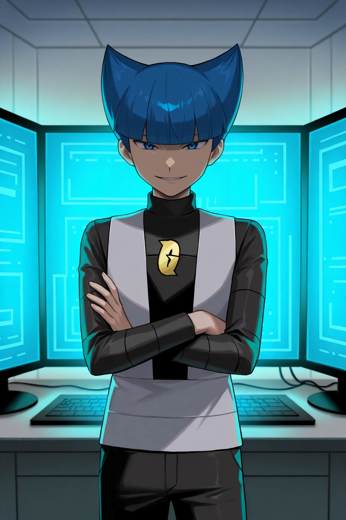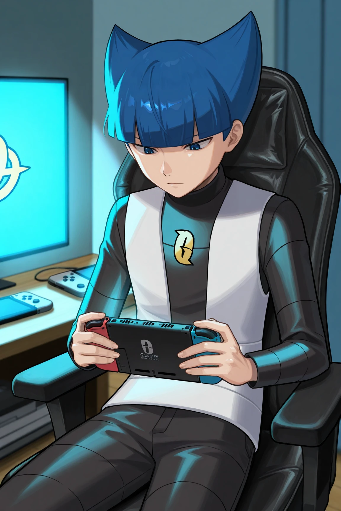 saturn_pokemon, blue eyes, blue hair,