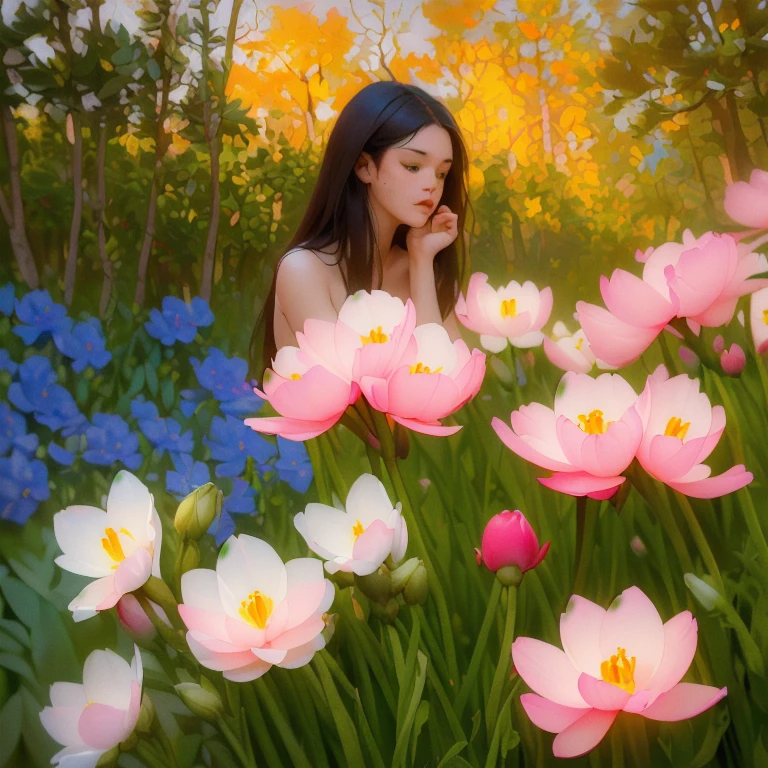 Laura was trained on a set of photographs, a series of paintings made by the author, in total these are fragments of paintings, close-ups of flowers, plein air works made from life, sketches, blooming gardens, spring themes. The model is set up in a painterly manner, rich colors, clear shapes, moderate detailing. Wide brush, stylized oil painting, graphic elements, anime, wide spots of color. A large number of flowers, lilies, cherry blossoms, apple trees. The whole theme is summed up by the female image, the ????? form. In a balanced combination with other models, the result is not predictable, experimentation is the best option for creativity, I wish you good luck. MaxZen.