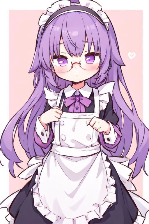 cowboy shot, 1girl, glasses, hair ribbon, purple hair, asakura rikako, white coat, yellow ribbon, white ribbon, long hair, violet eyes, long sleeves, black pants, hairband