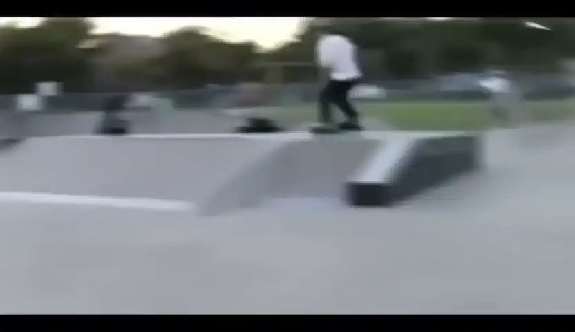 "video of sk8r style, man wearing inline skates is doing tricks, scene appears to be real life found footage"