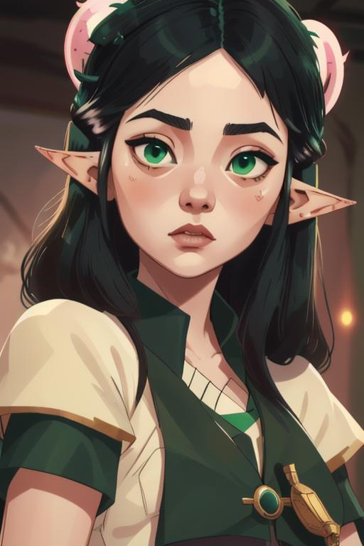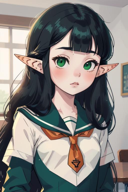 green eyes, black hair,