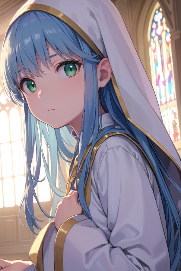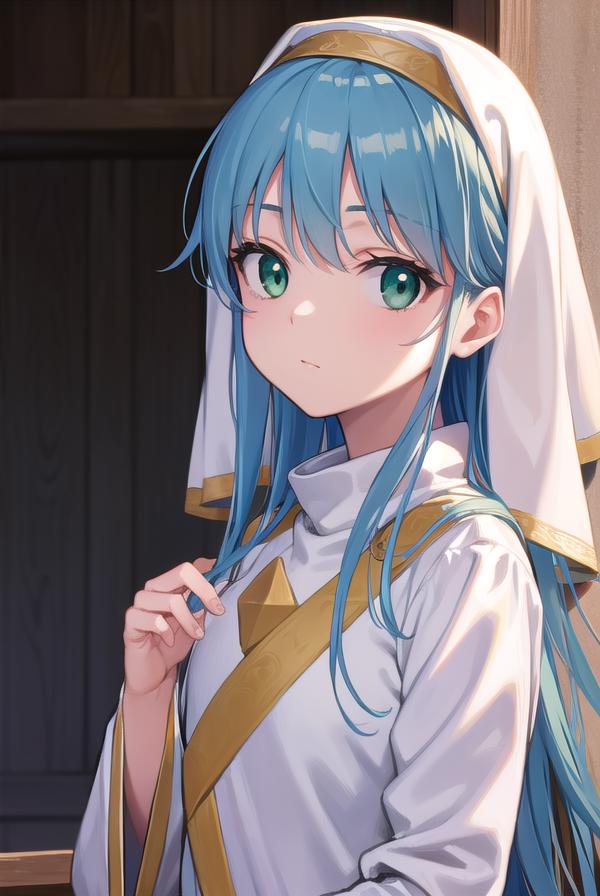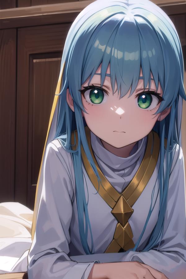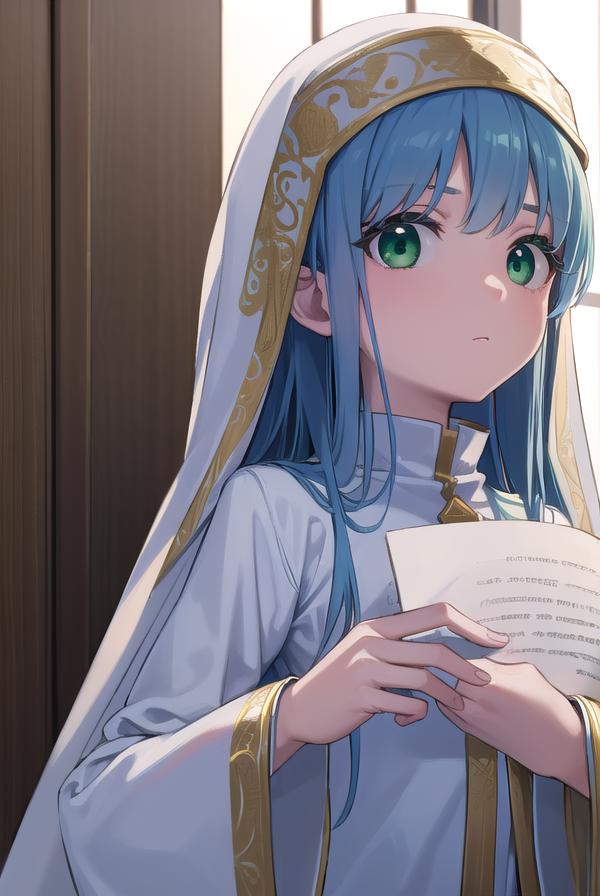 index, (green eyes:1.5), blue hair, long hair,