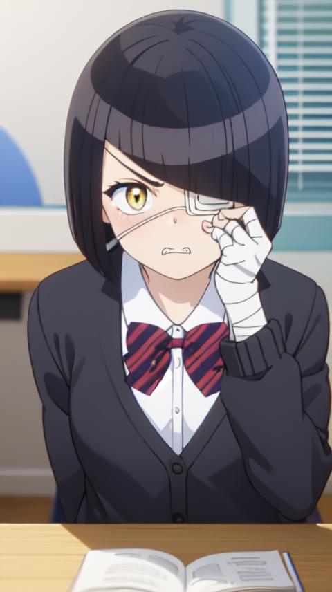 Adding tags like "blunt bangs" might occasionally be necessary to properly generate her usual hairstyle.
