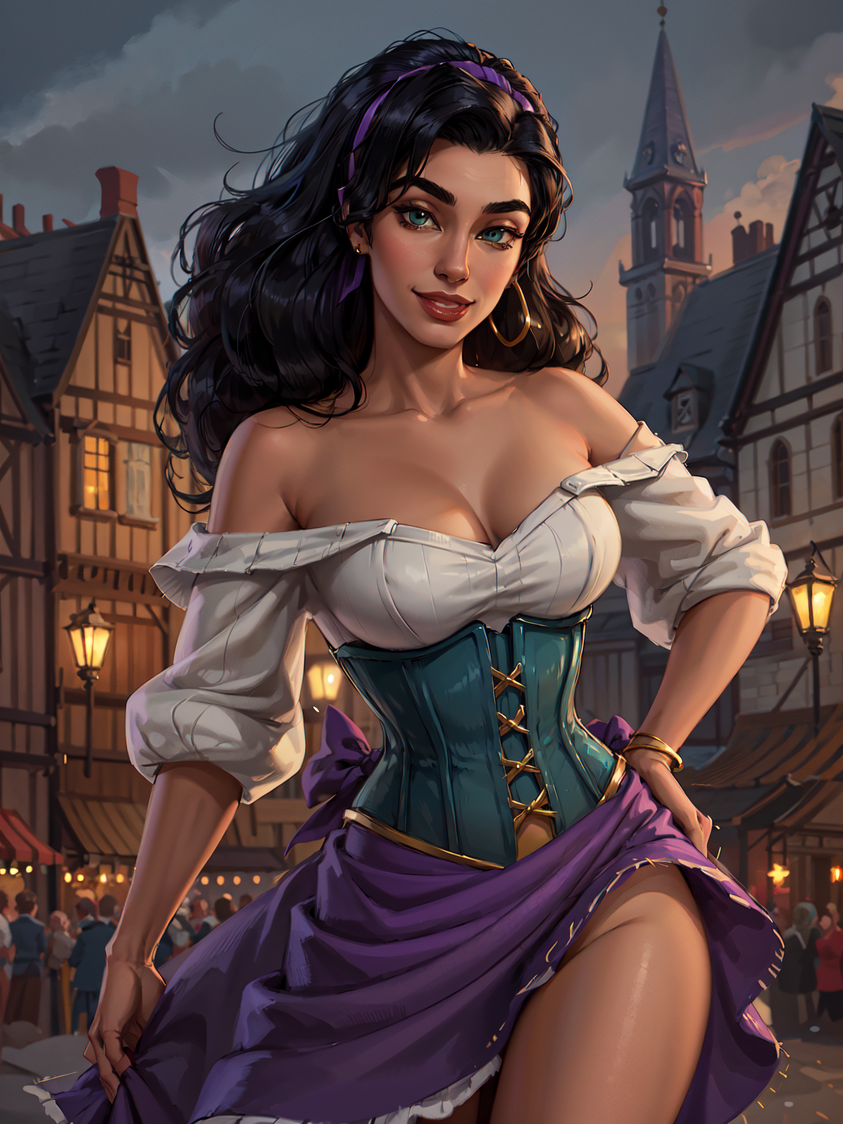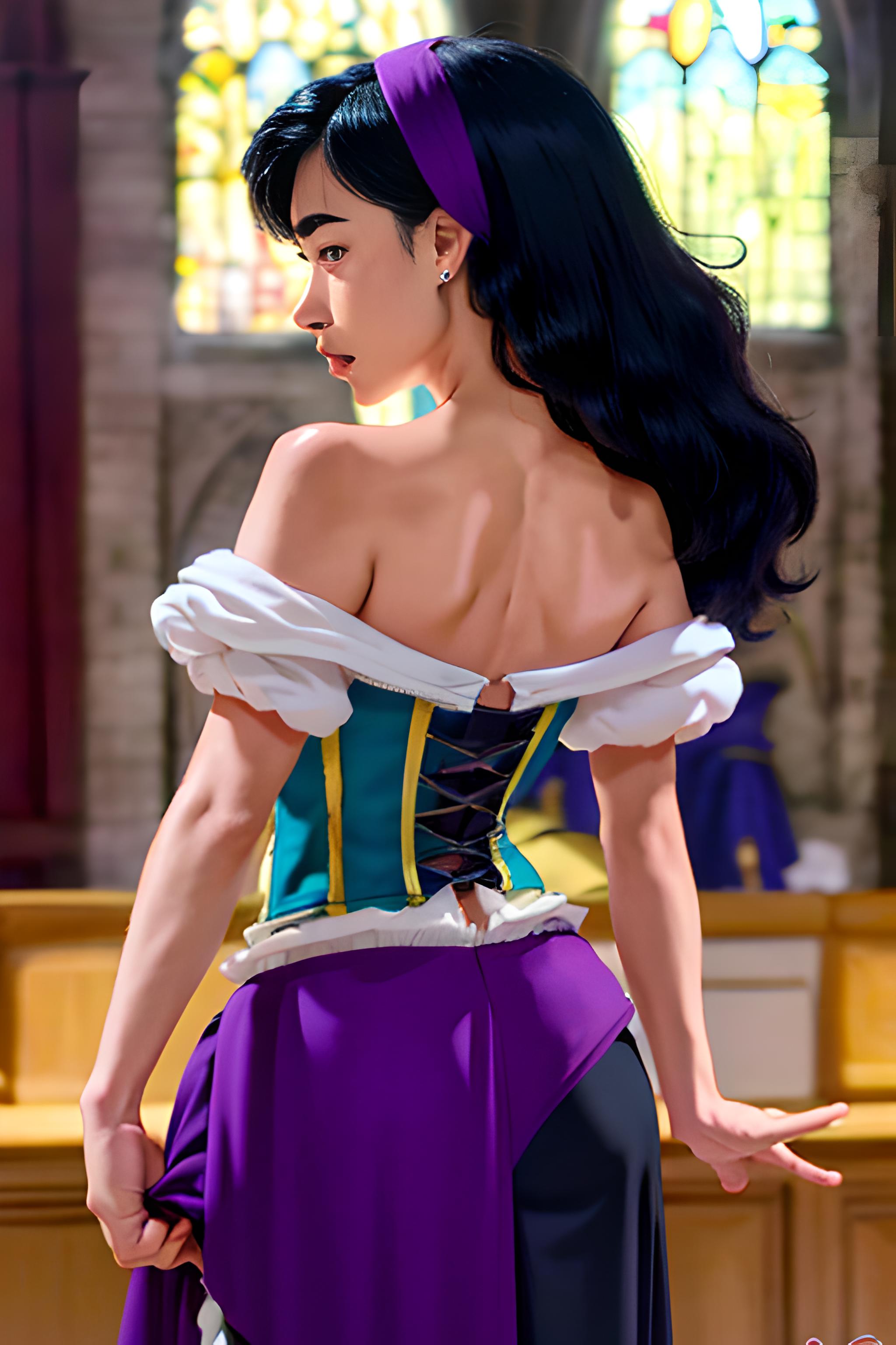 Classic outfit: hairband, ???? shoulders, dress, puffy short sleeves, corset, purple skirt
