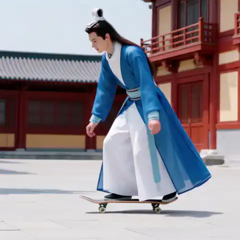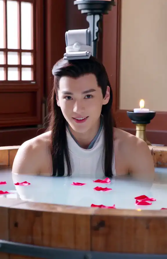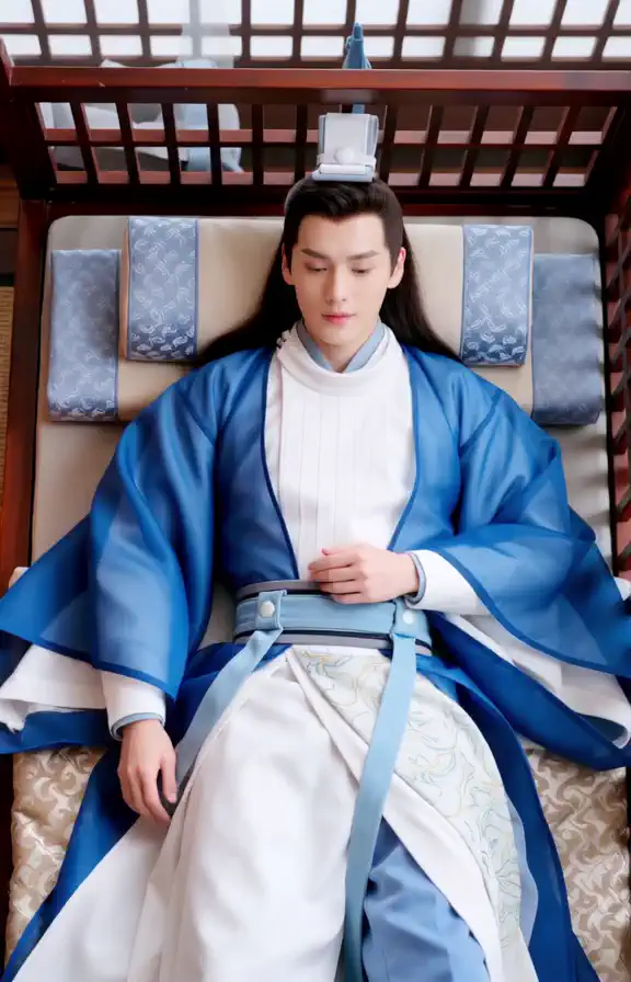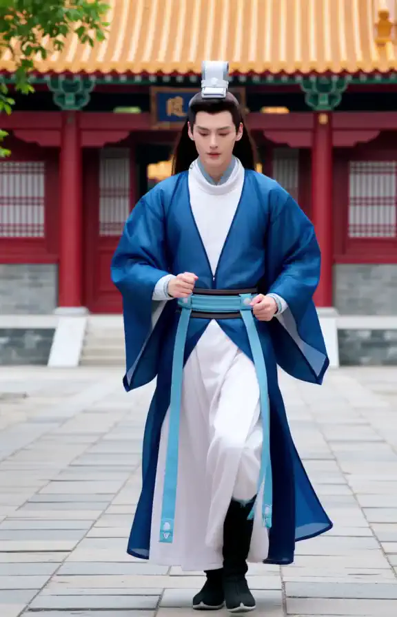 a solo 30-year-old Asian man from ancient times with long flowing hair, a small coronet, and dressed in a blue and white hanfuFor Phr00t's model, use strength 1.0 or close to it. You may need to tone it down using the native models.