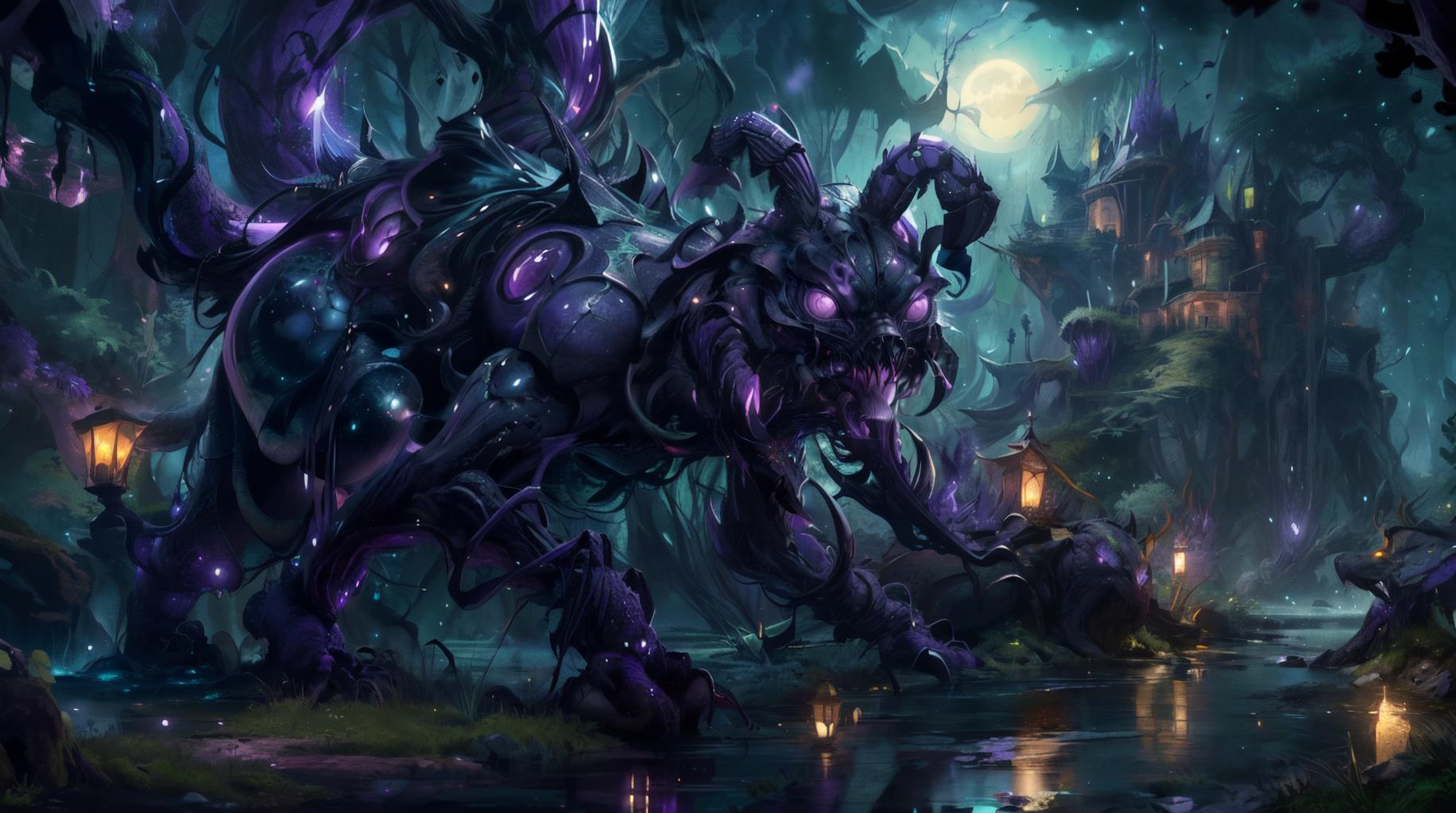 fantasy,night,tree,Medieval fantasy world,Moonlight at night,wilderness,night