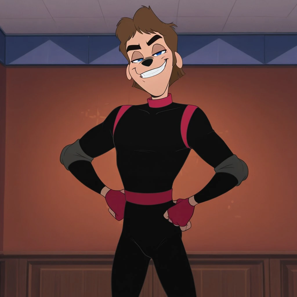gammas outfit, bodysuit, black bodysuit, red collar, black sneakers, elbow pads, knee pads, fingerless gloves, gloves