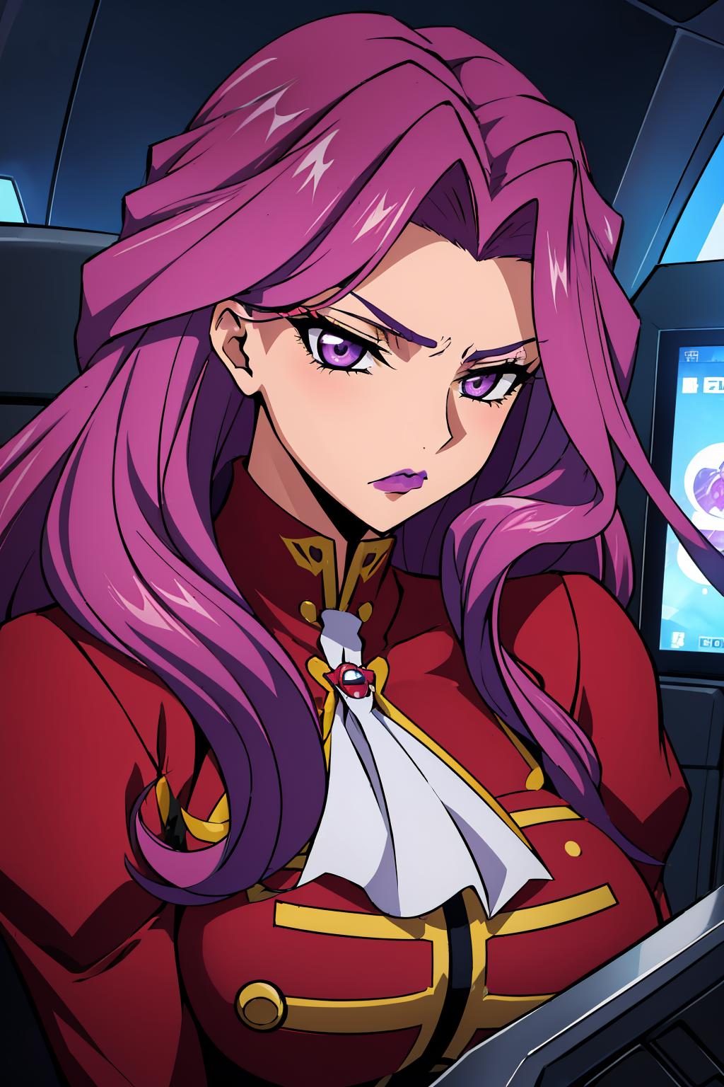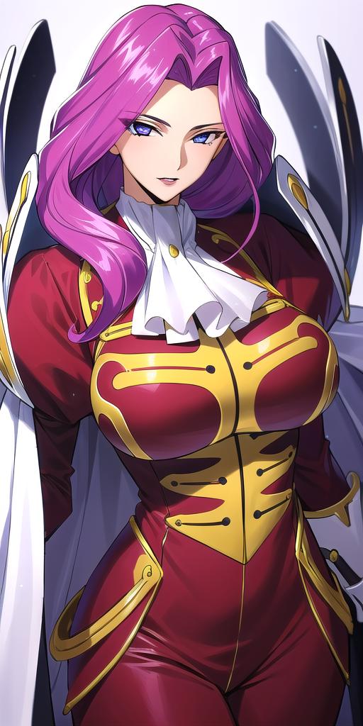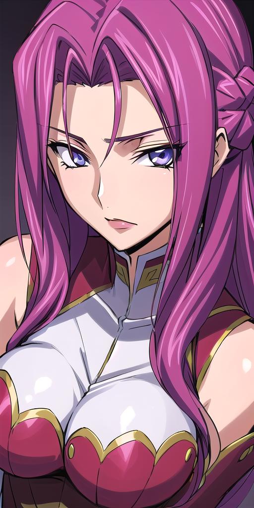 I got good results with: <lora:Cornelia_li_Britannia:0.6> Cornelia_li_Britannia, 1girl, ???????????, purple_eyes, (lipstick:.9), (makeup:.8)