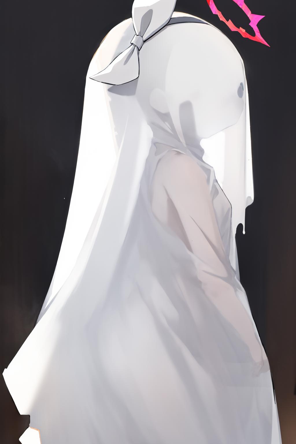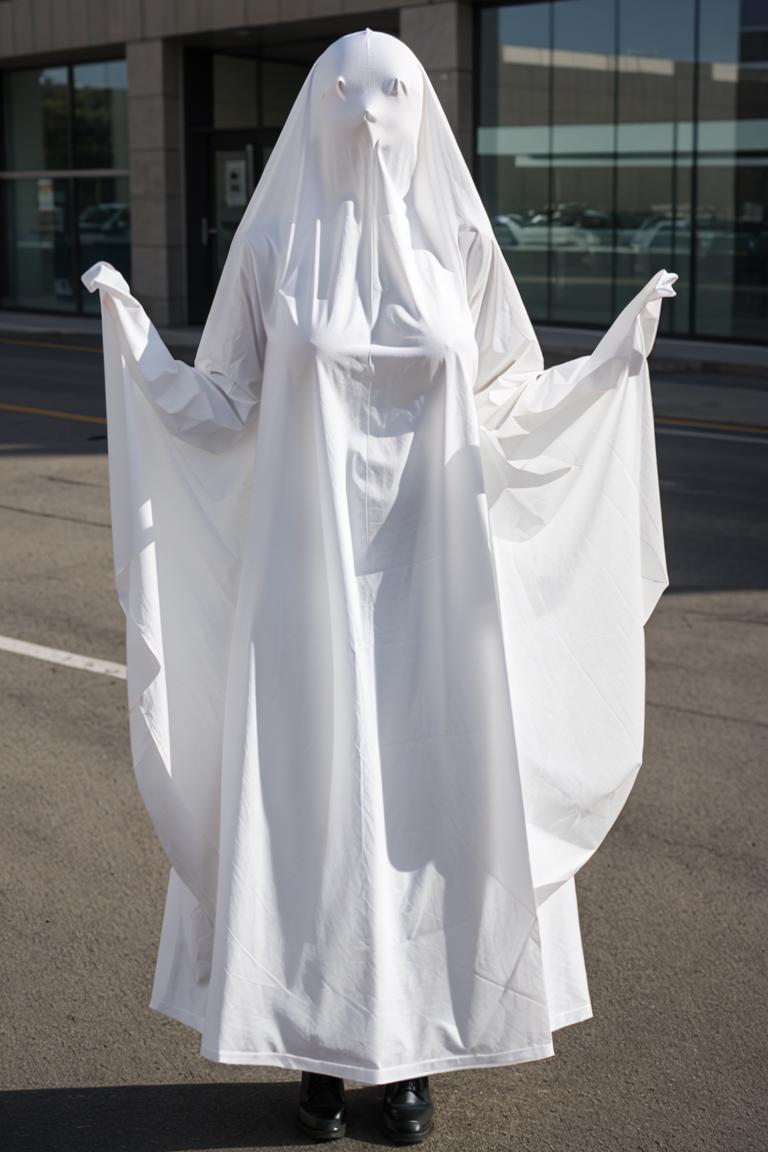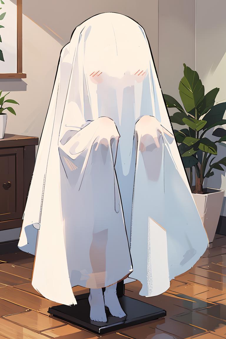 A lora of sheet ghost clothing, trained on 54 sheet ghost clothed girls with faces covered.\