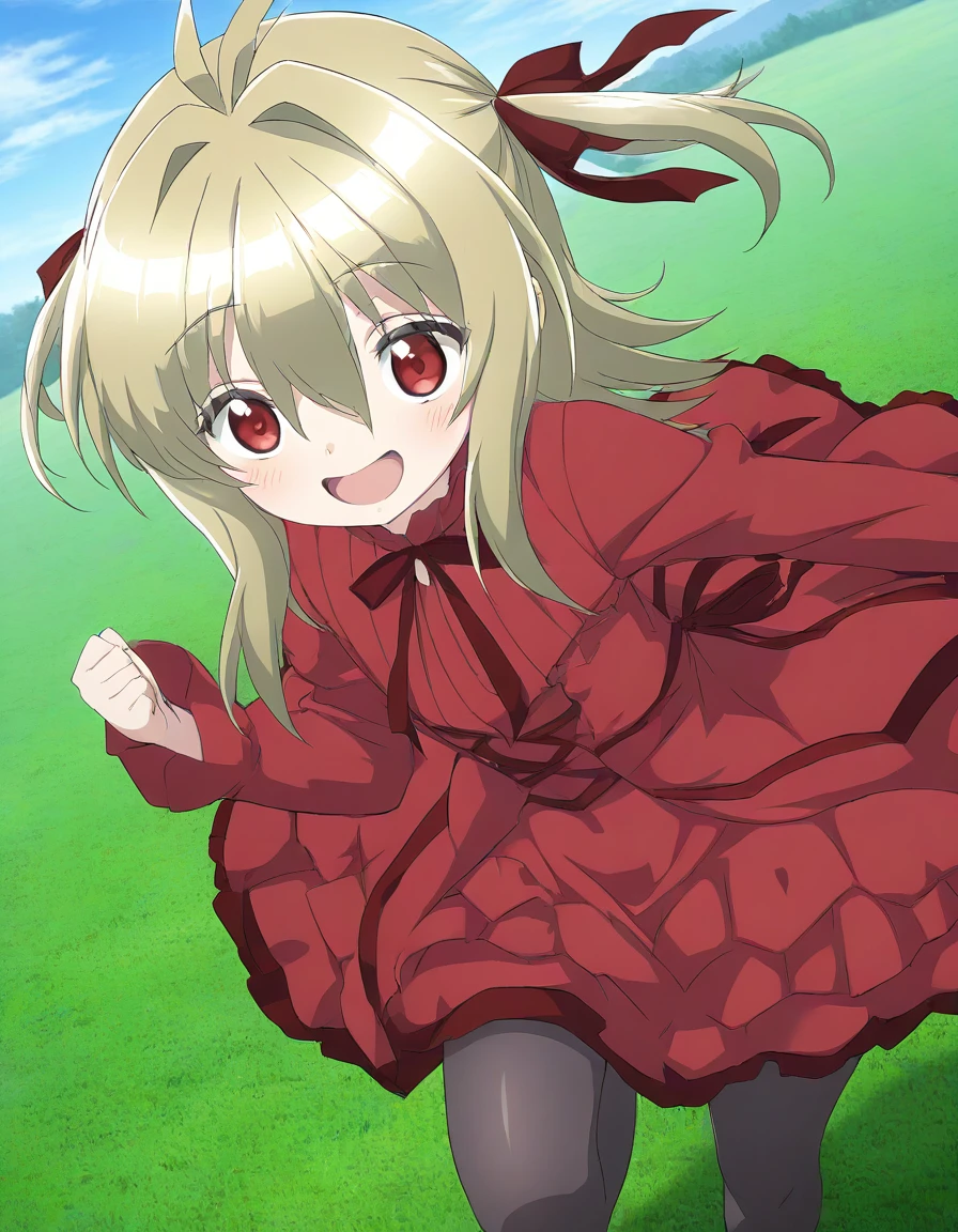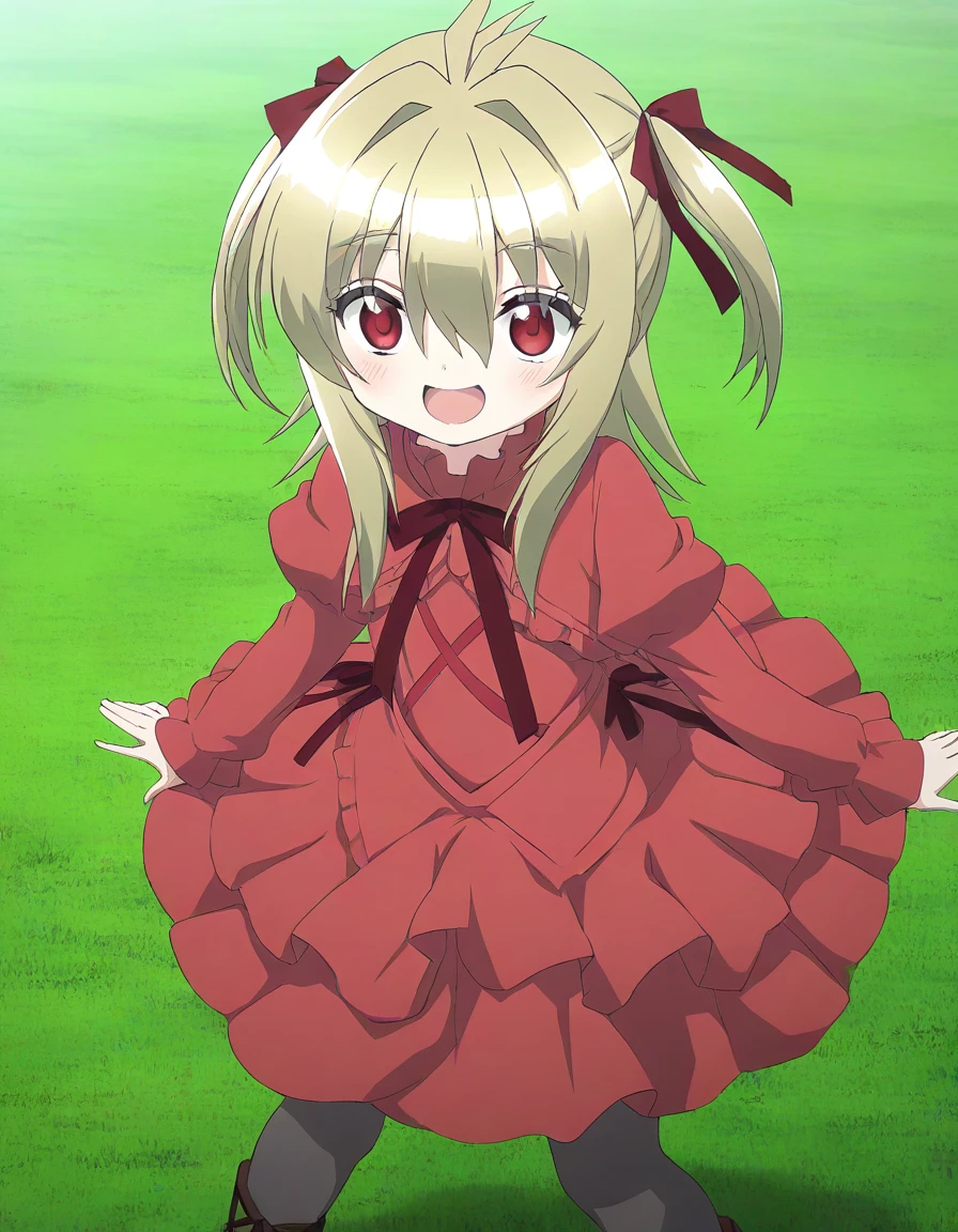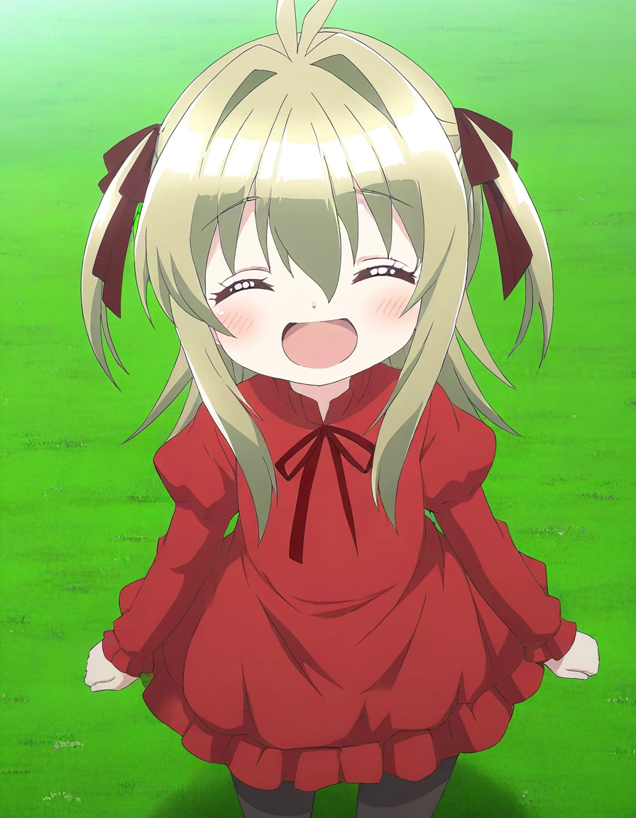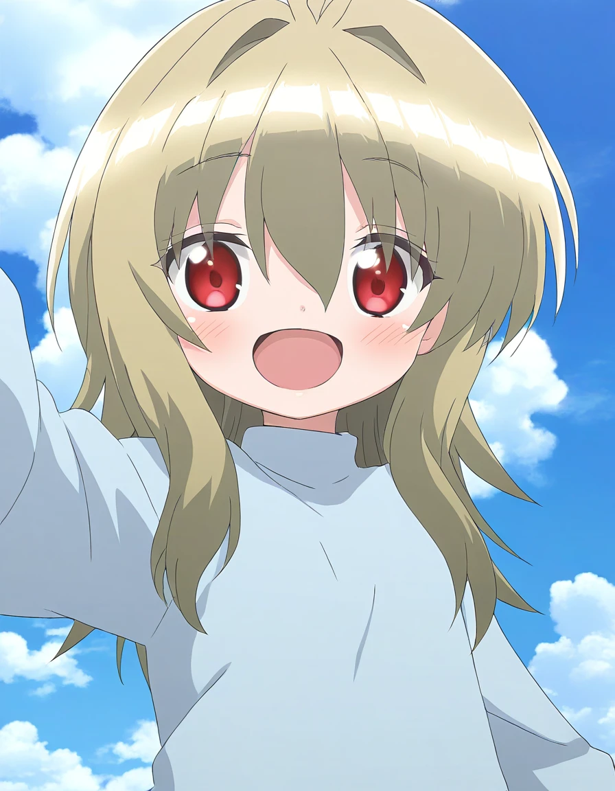 Kidouin_Makio, red eyes, blonde hair, long hair, hair between eyes, bangs, hair intakes, antenna hair, chibi,