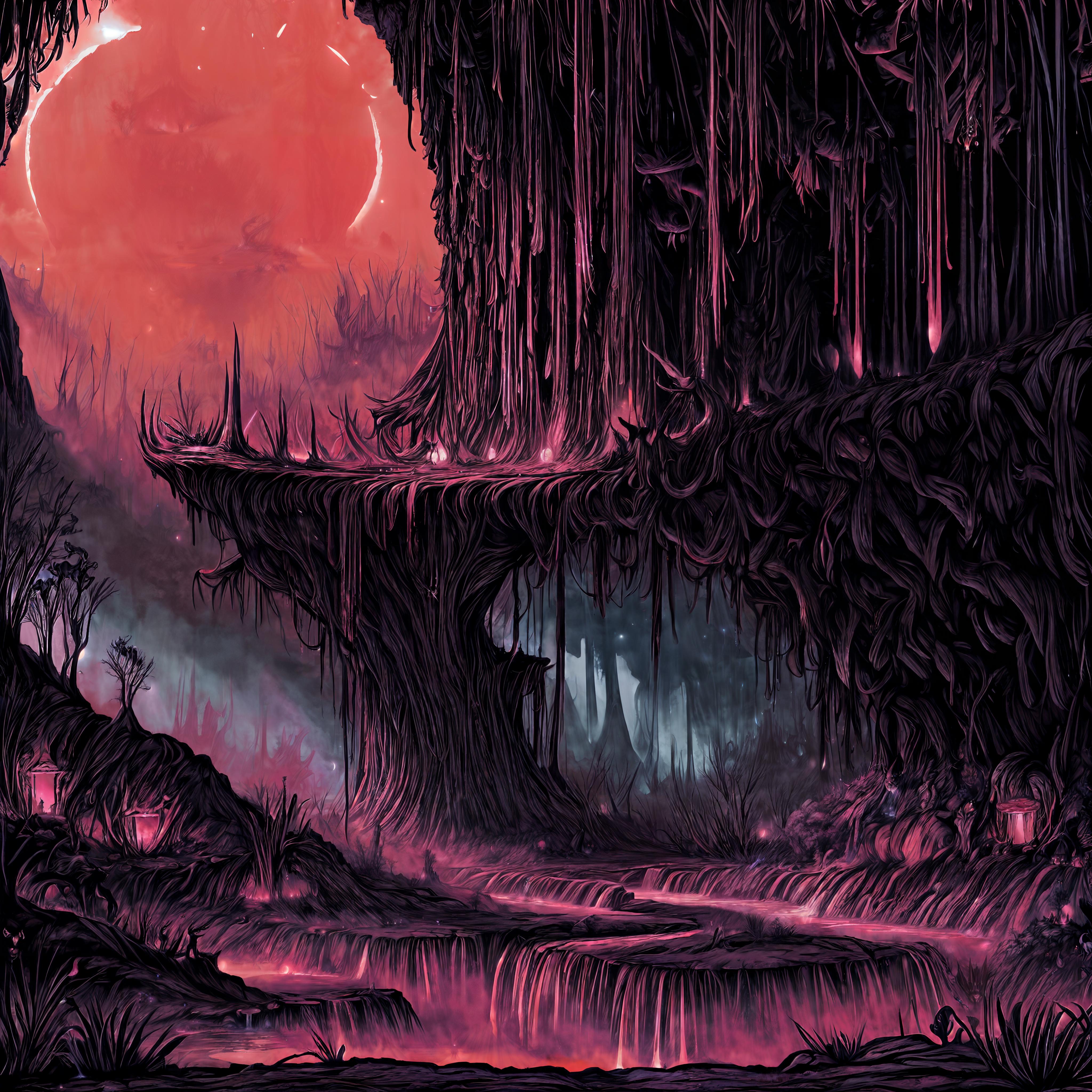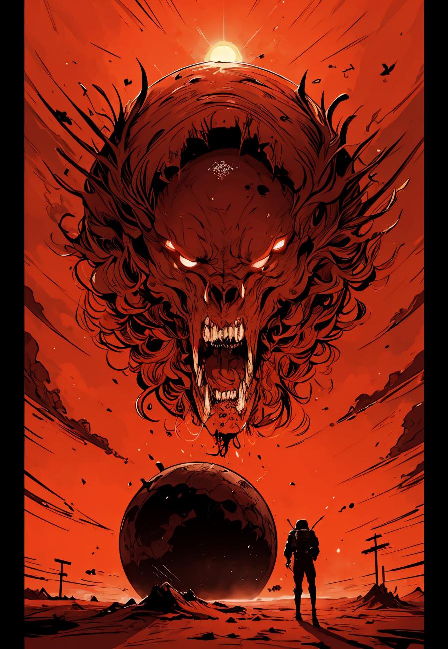 If you make a short prompt it will add demons/monsters by itself. Red backgrounds also brings the horror.