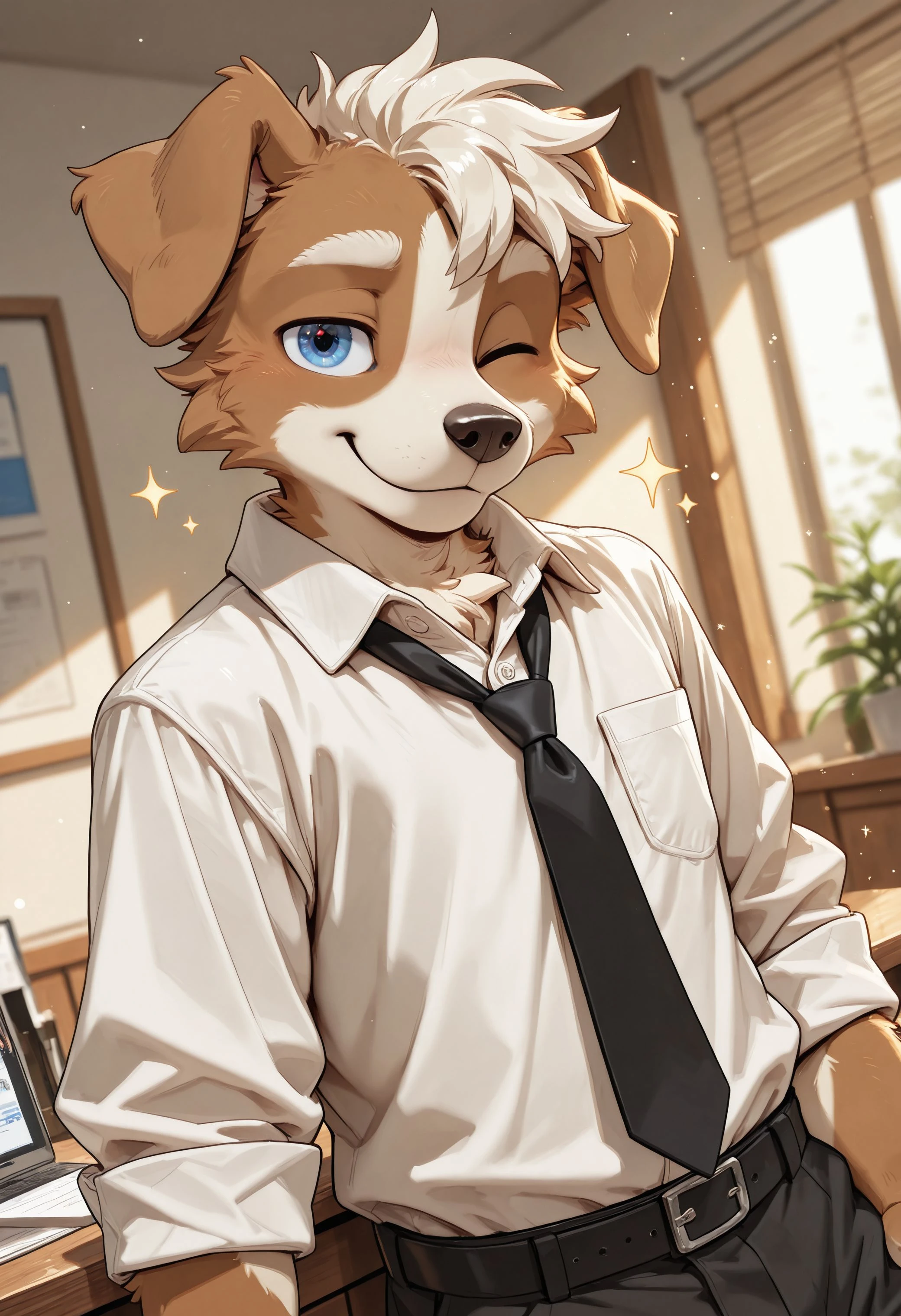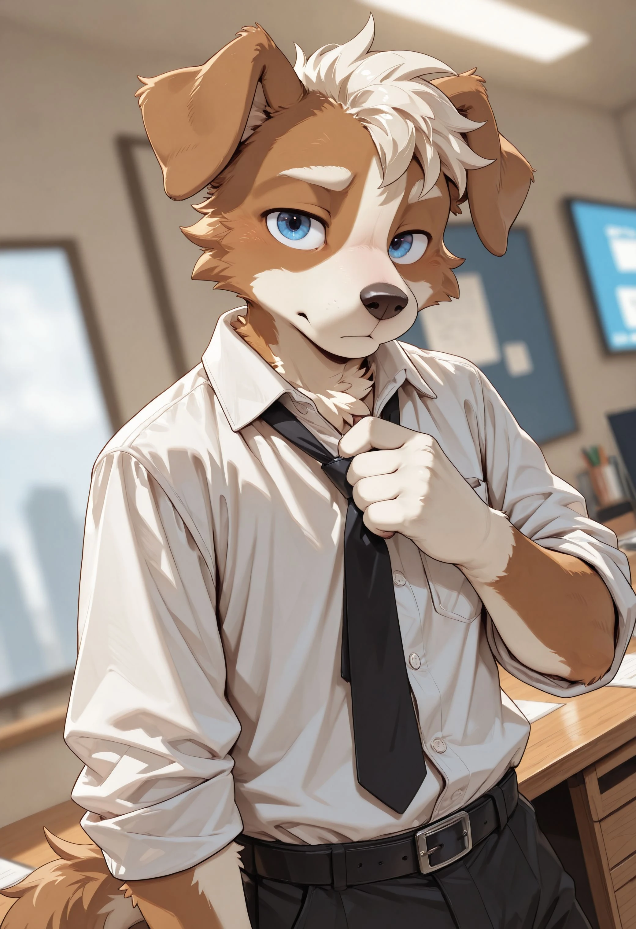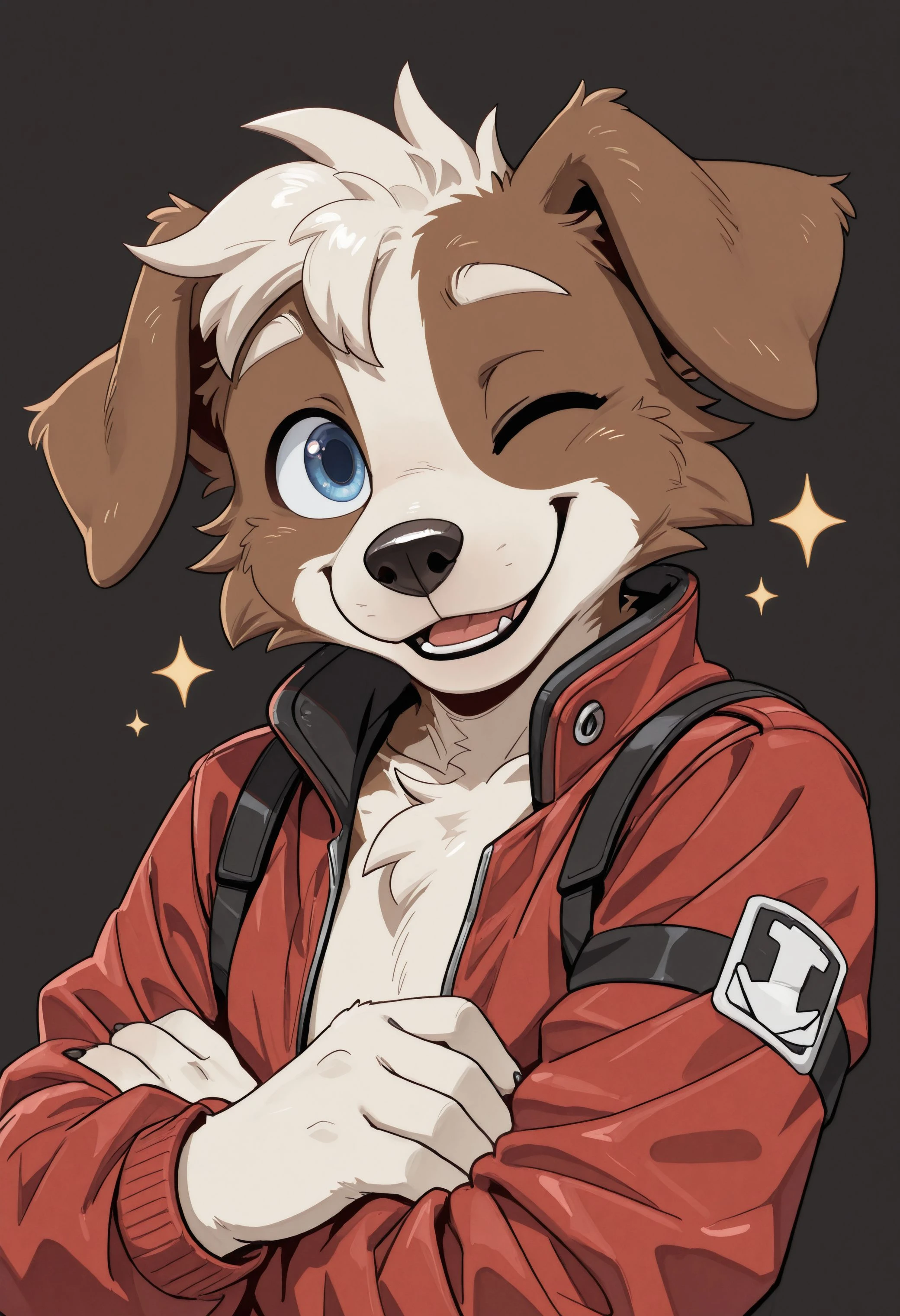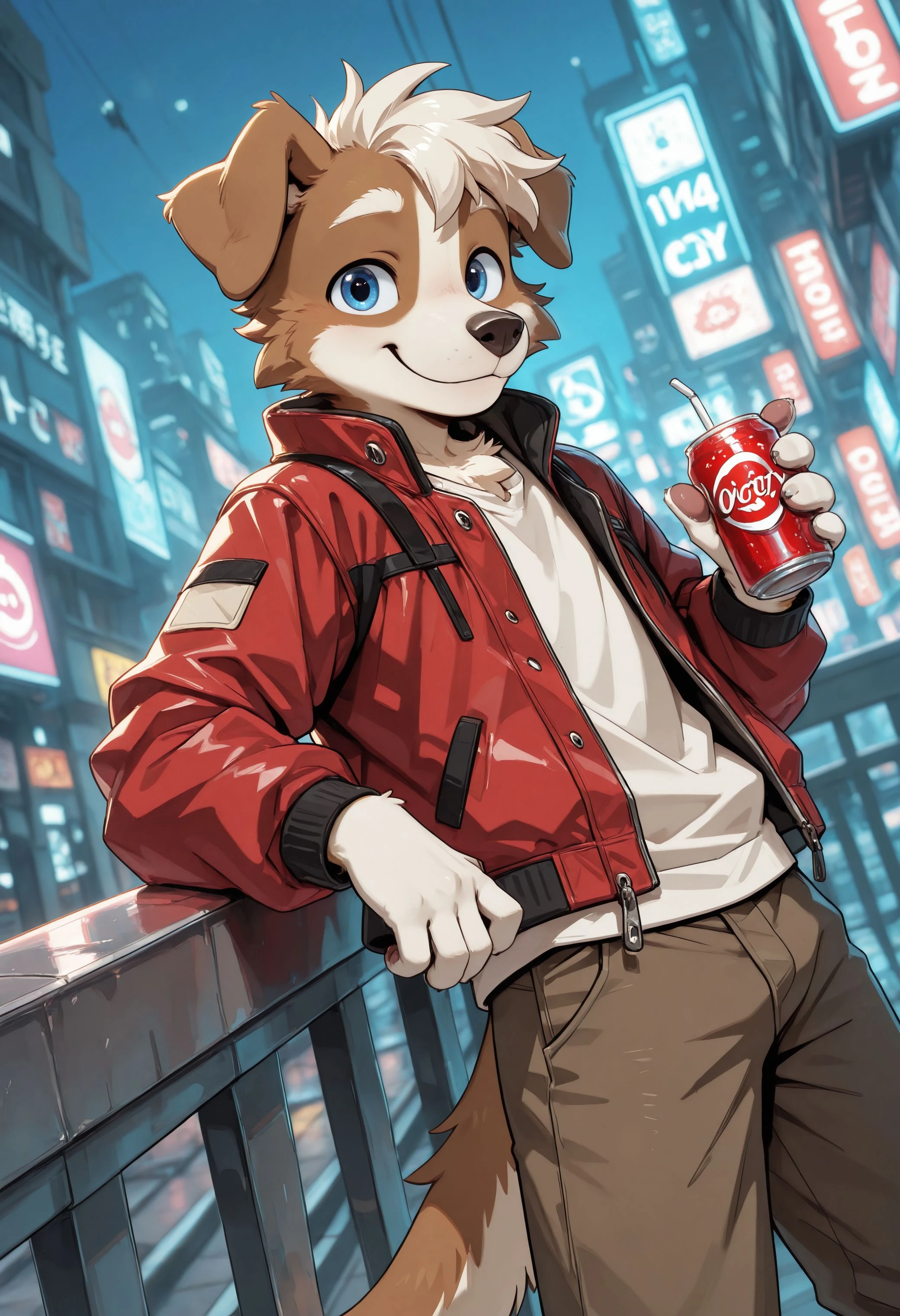 m141oc, 1boy, solo, furry, furry male, blue eyes, michialt, red jacket, pants