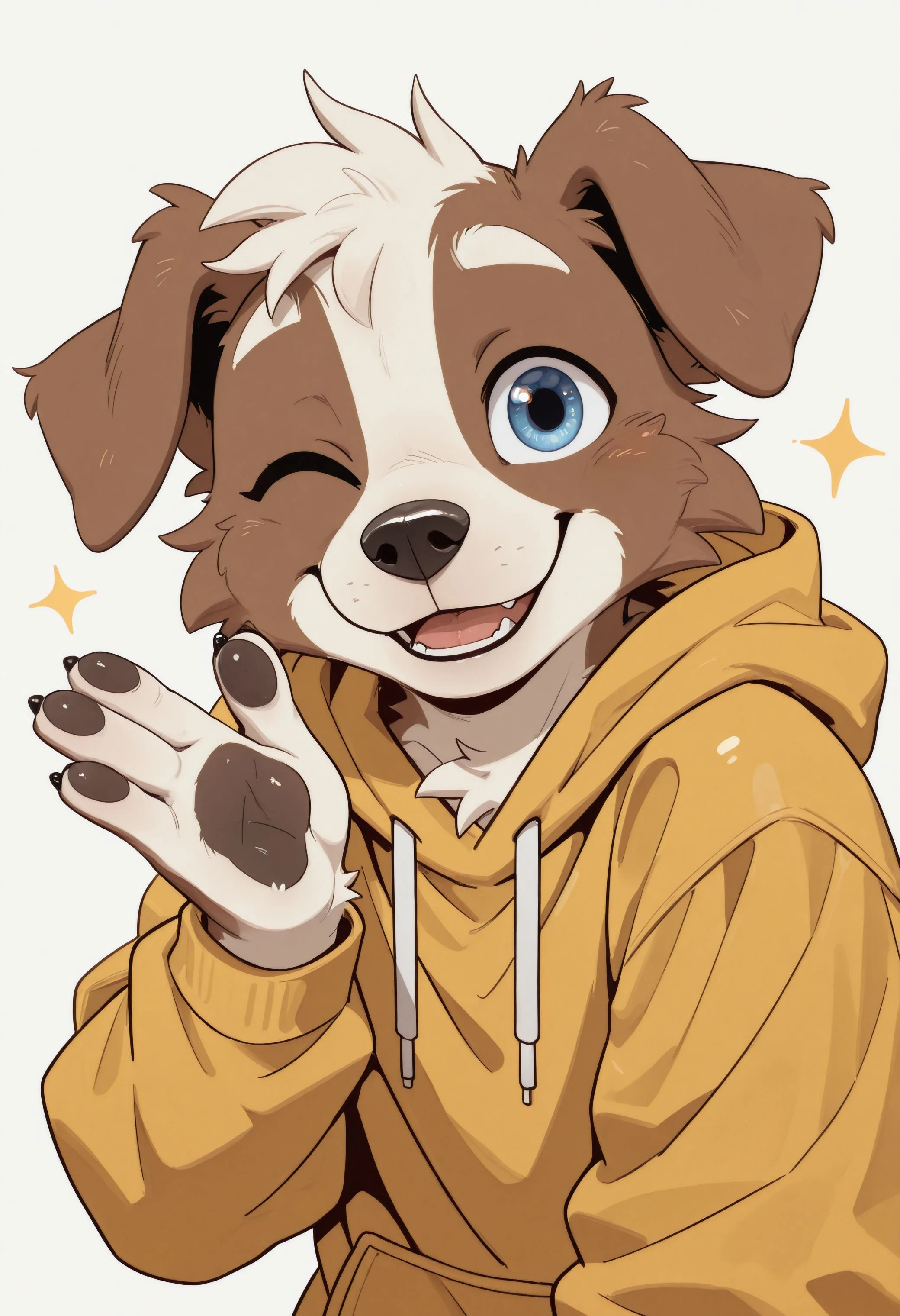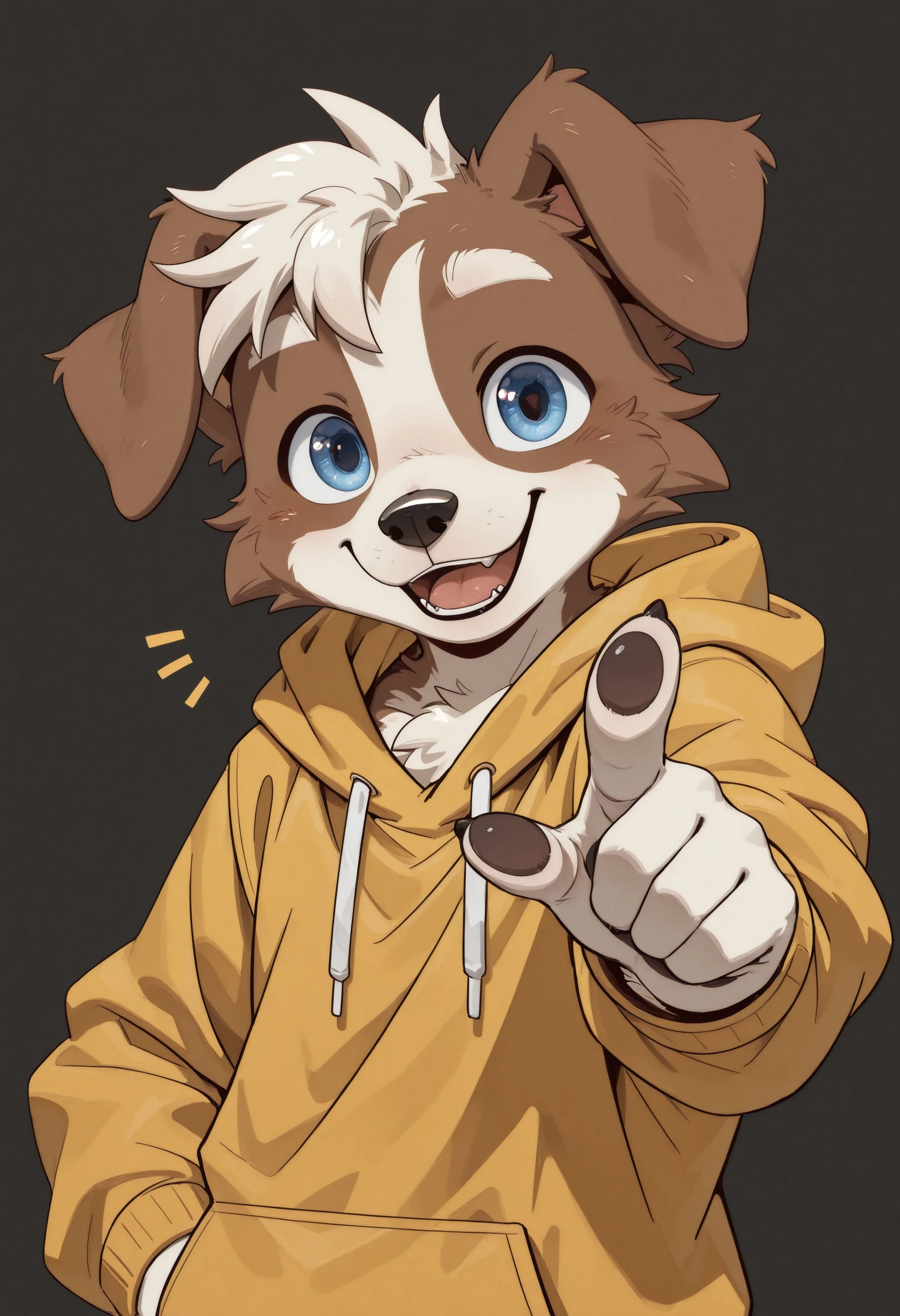 m141oc, 1boy, solo, furry, furry male, blue eyes, yellow hoodie, shorts