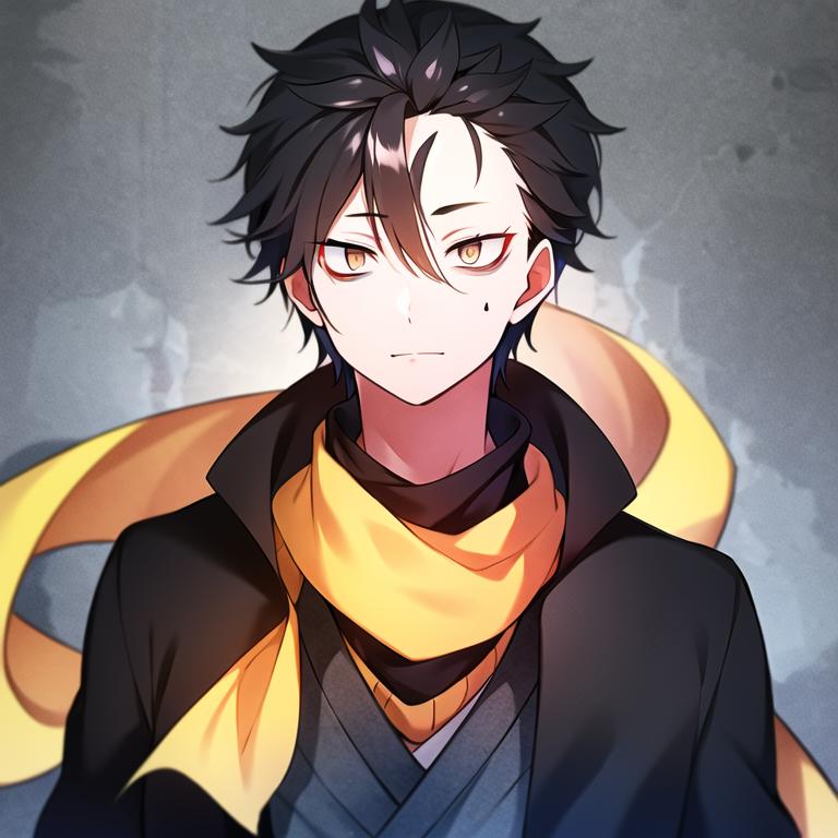 Wrath: Wrath, black_hair, Brown_eyes/red_eyes, scarf, bags_under_eyes.