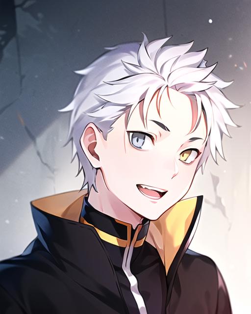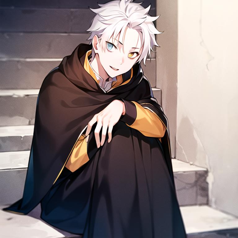 Gluttony: Gluttony, white_hair, heterochromia, yellow_eyes, grey_eyes, cloak.
