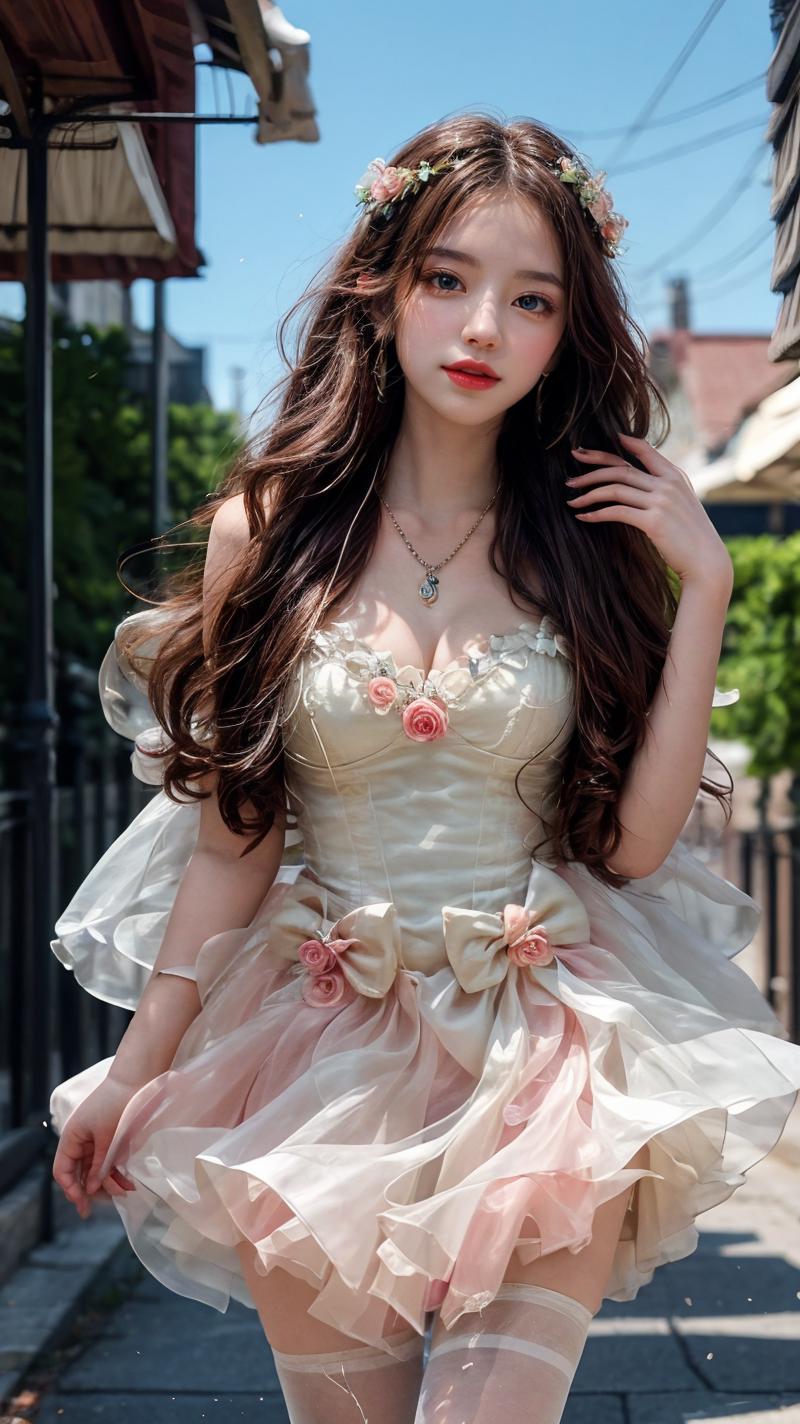 一件鲜花主题的裙子。tag:Romantic Rosette dress