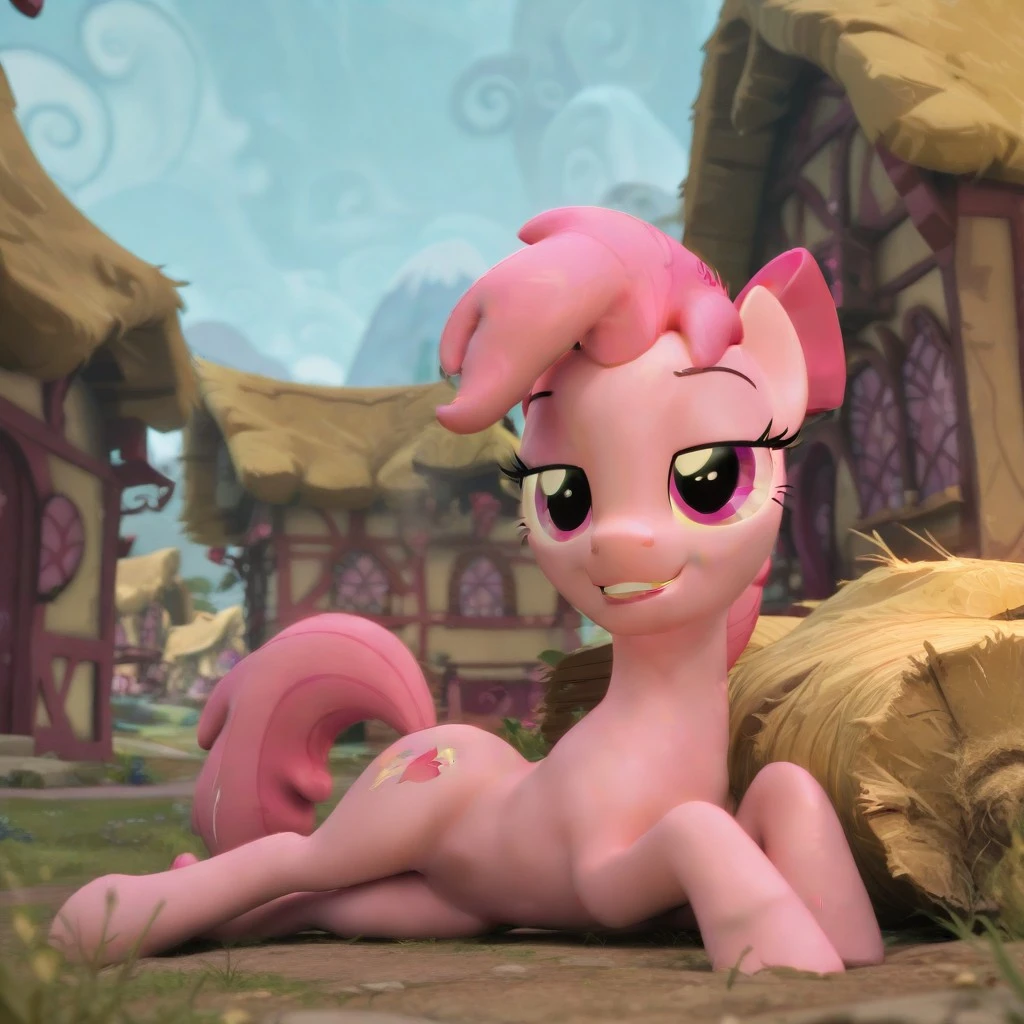 Ponyville appears incorrectly. There were photos of "timber frame, house", "timber frame, house, jetty" and "thatched roof" for regularization and explanation, and pictures of EdPlus 3D model of Ponyville with almost no further details. Add +"yellow thatched roof" and -"purple house" for better colors.