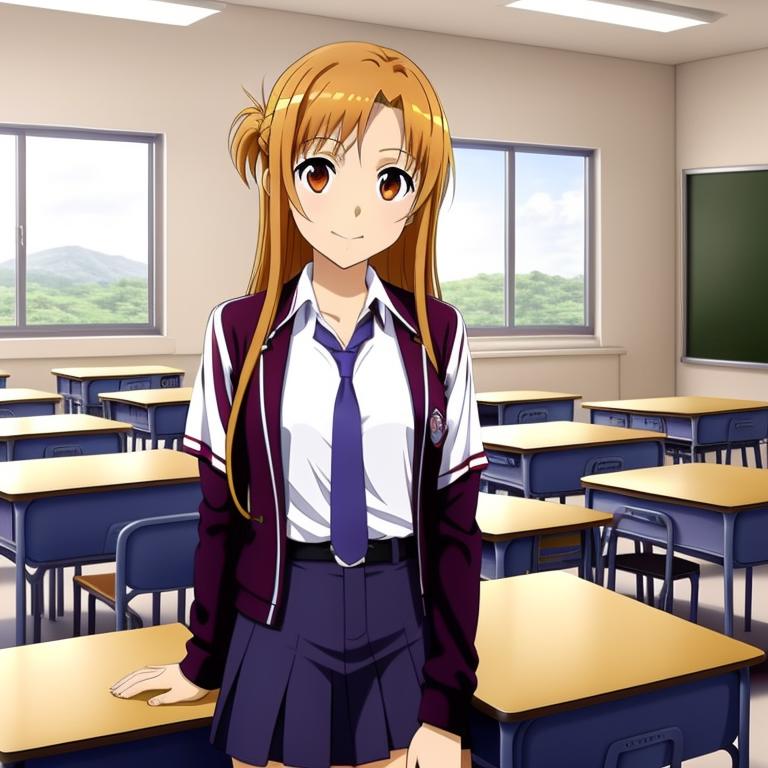 for example: 1girl, yuuki_asuna,solo, wearing school uniform, in the classroom
