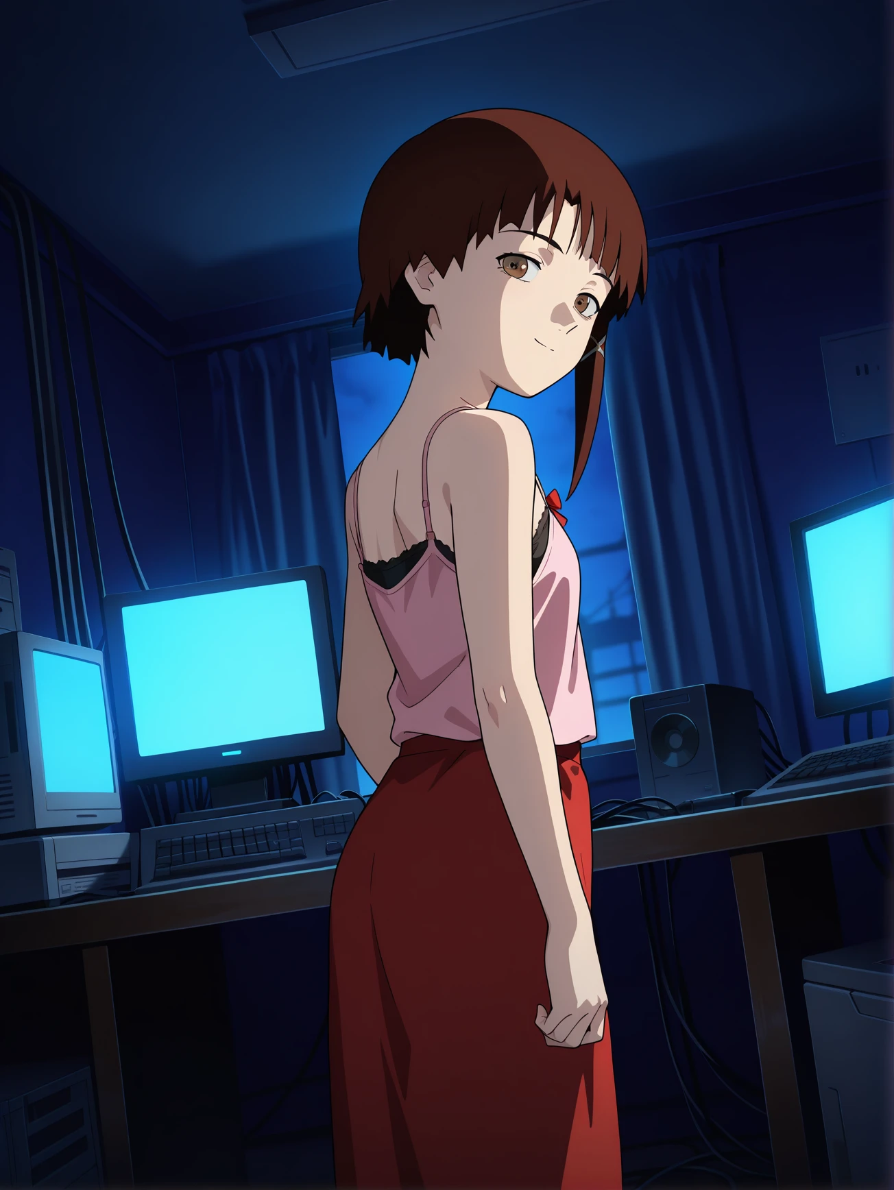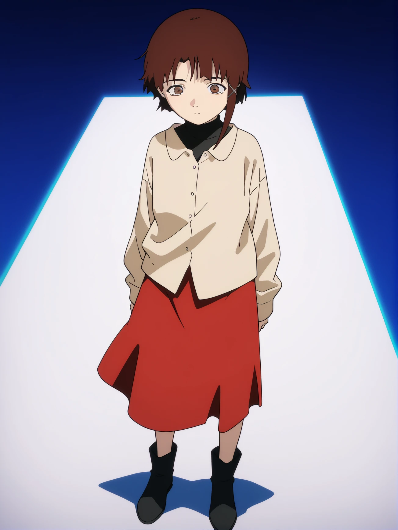 However add one new outfit I missed before, beige shirt/black turtleneck with red skirt.