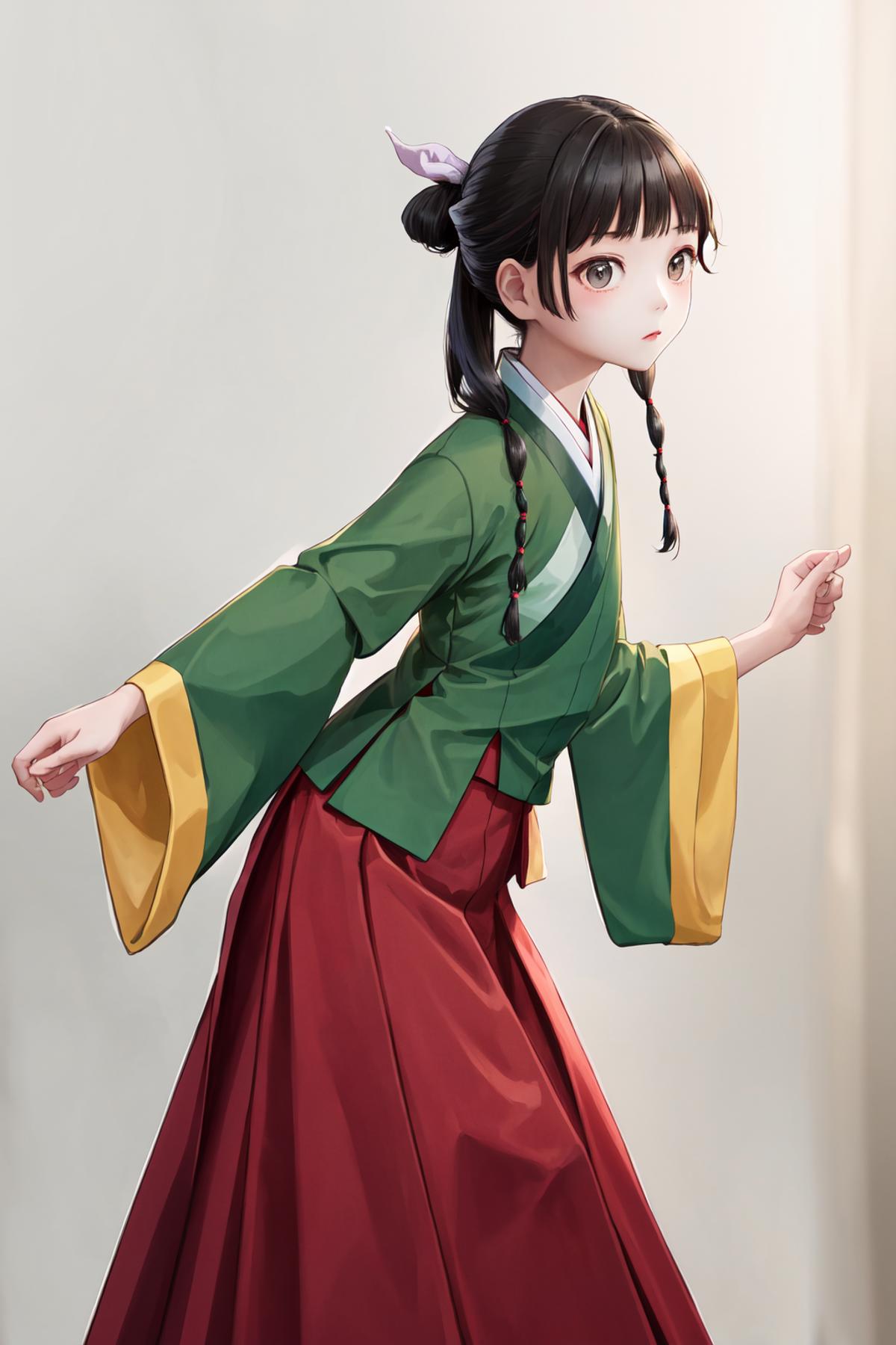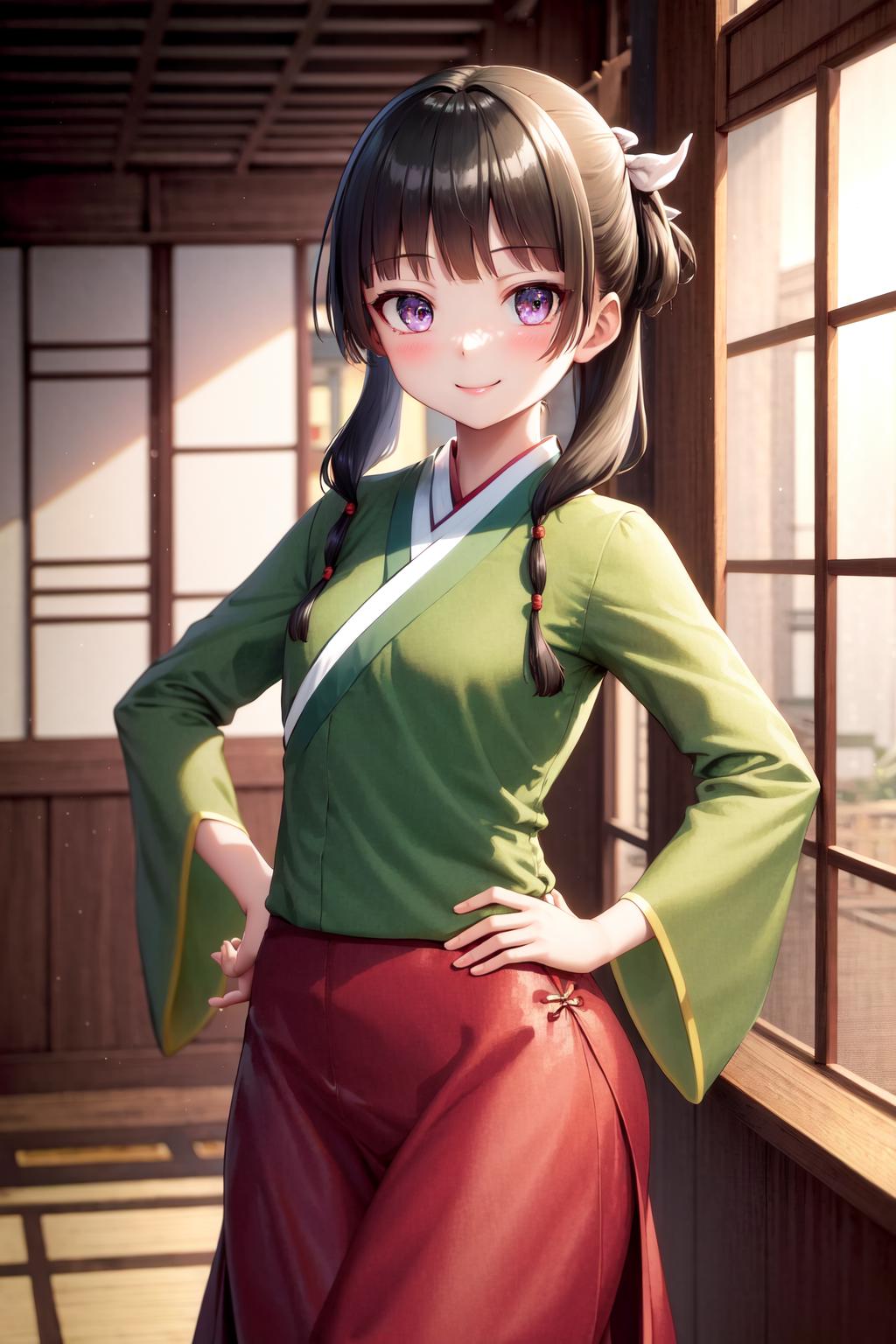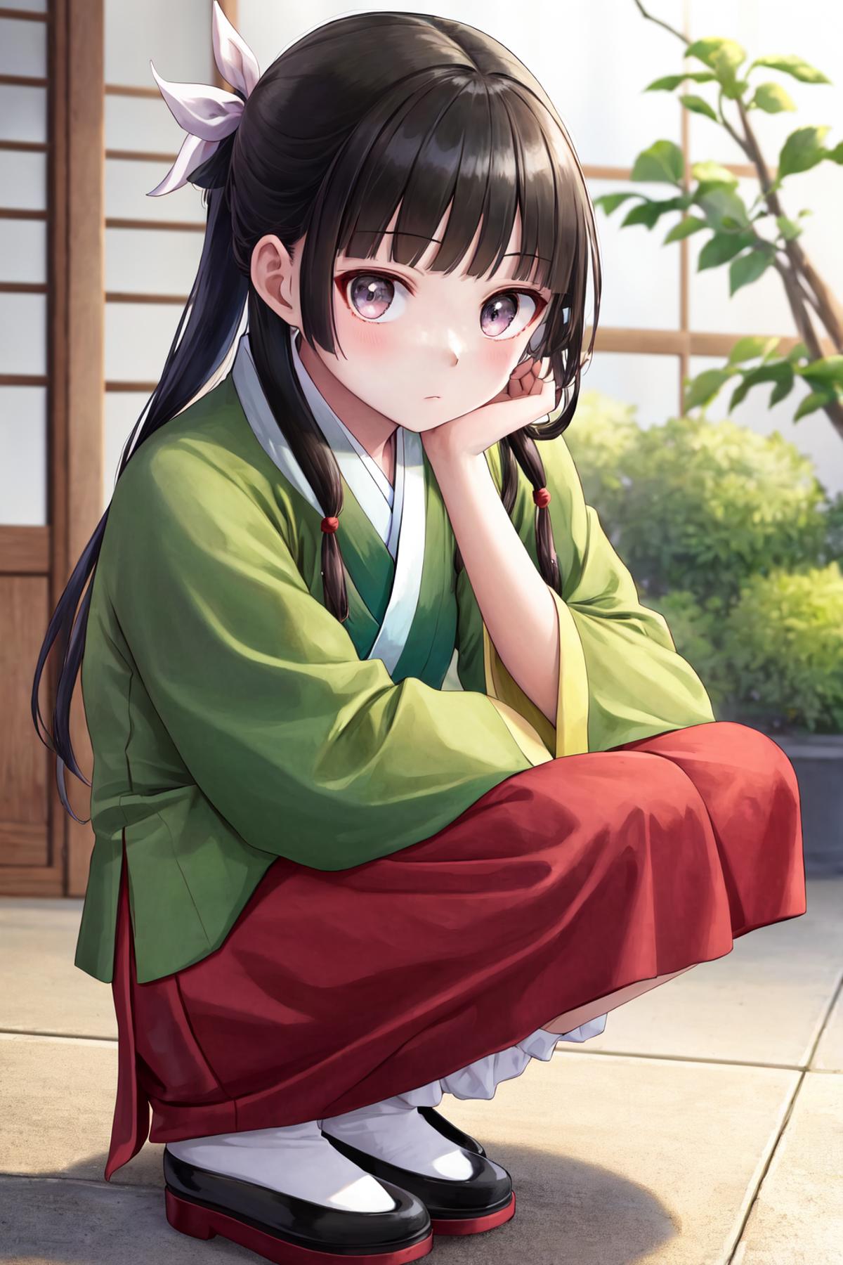 A character LoRA for Maomao from The Apothecary Diaries. The examples are using LoRA weight=1 and highres fix ESRGAN_4x with denoising strength=0.5.
