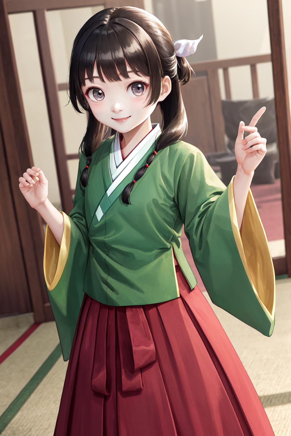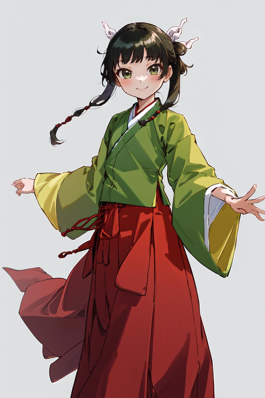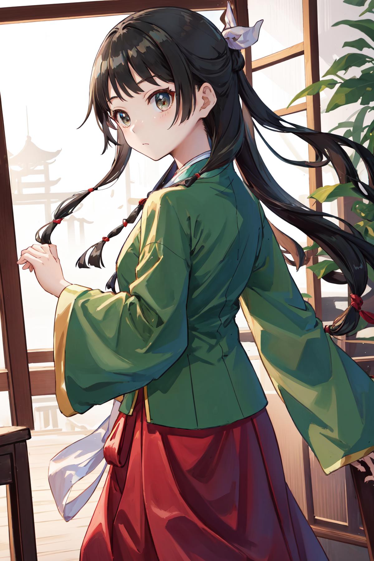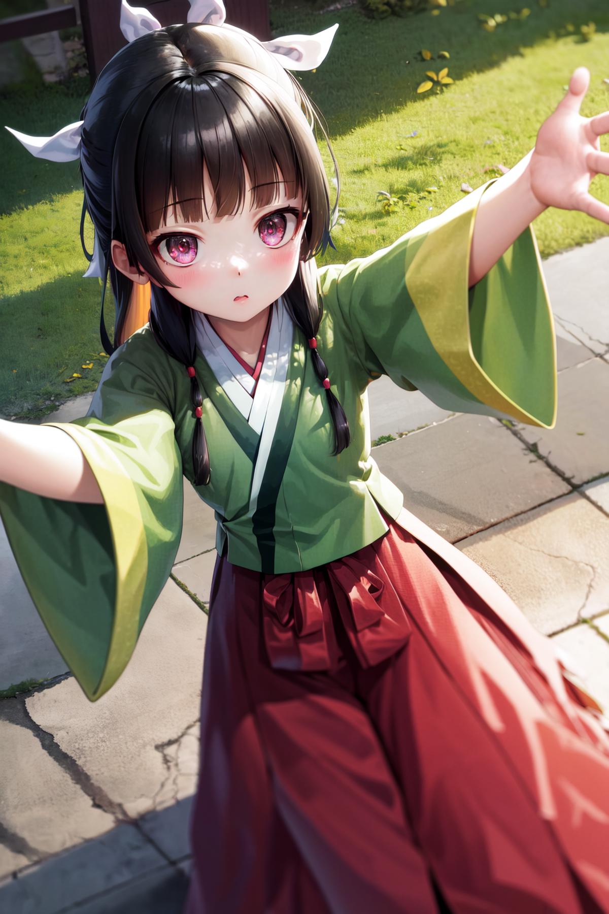A character LoRA for Maomao from The Apothecary Diaries. The examples are using LoRA weight=1 and highres fix ESRGAN_4x with denoising strength=0.5.