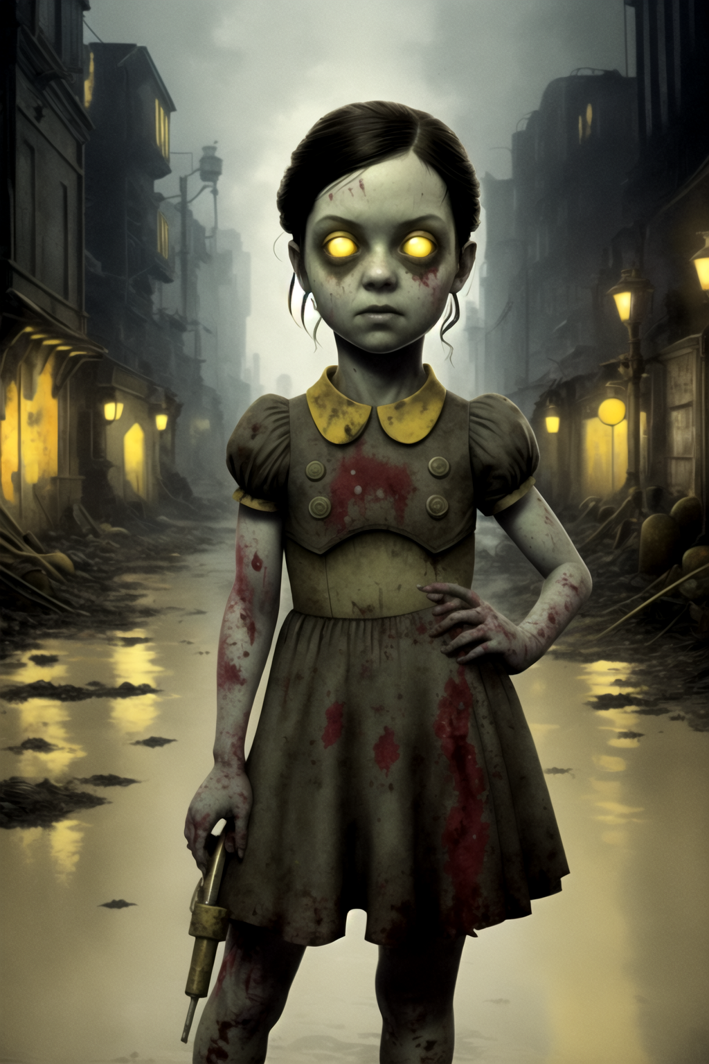 Other prompts : ?????, blood, muddy dress, black hair, dress, horror \(theme\), solo, yellow eyes, dark, yellow sclera, glowing eyes, creepy