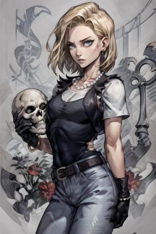 skeleton, skull, bone, ribs, flower, from side, (1other), 1boy/1girl